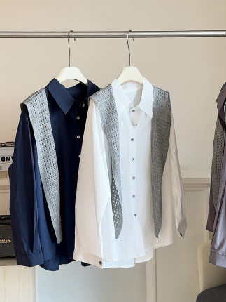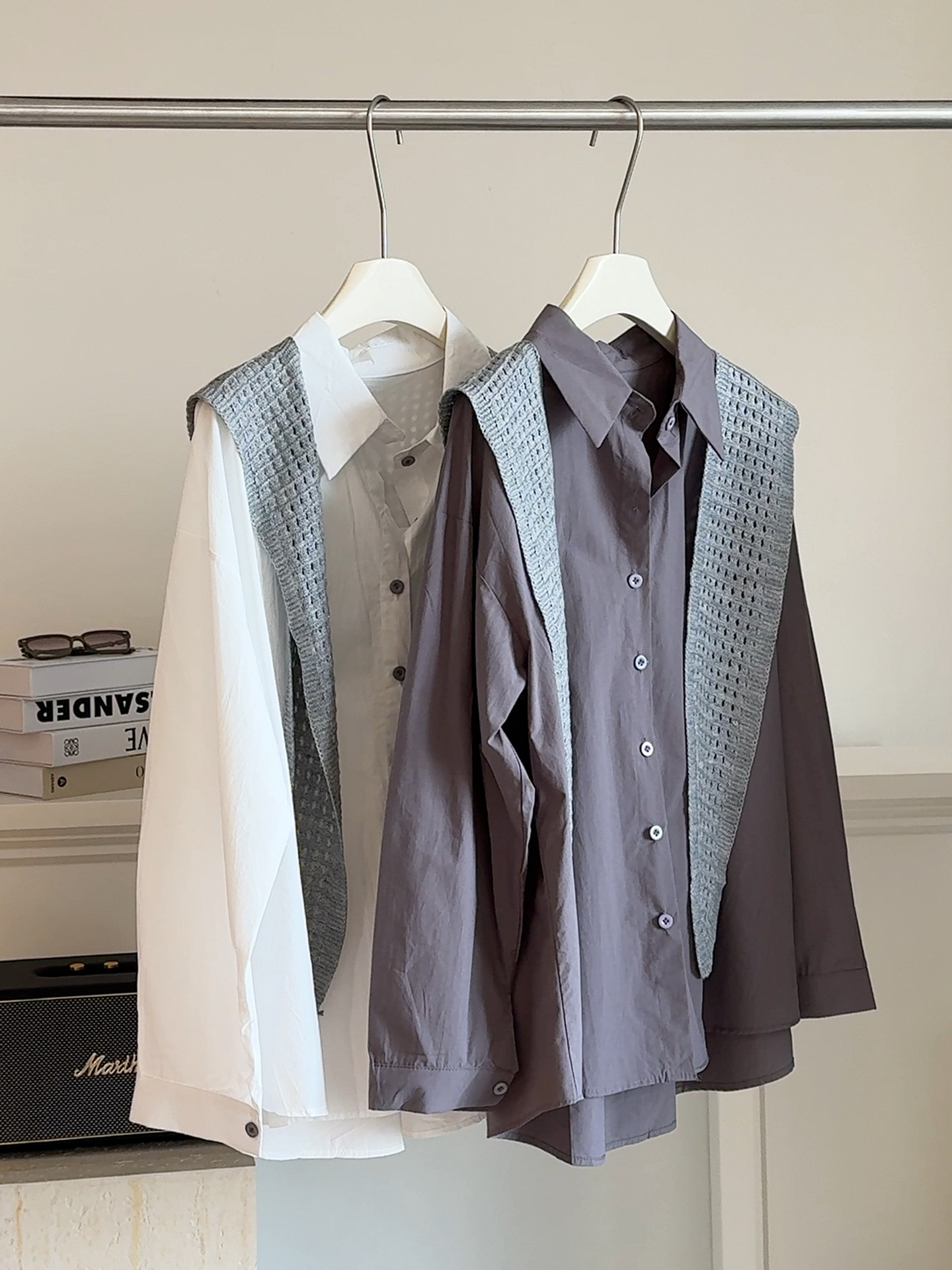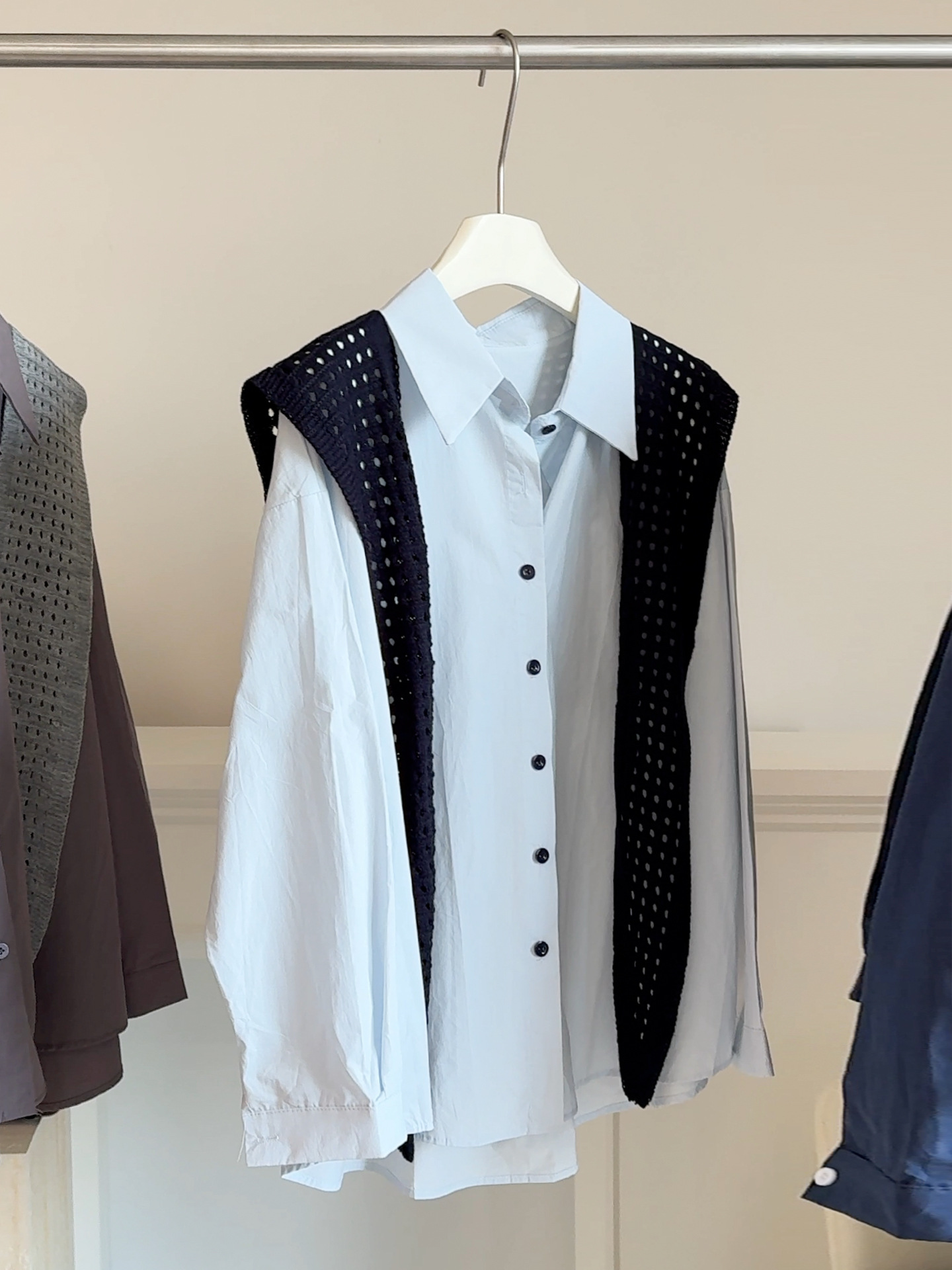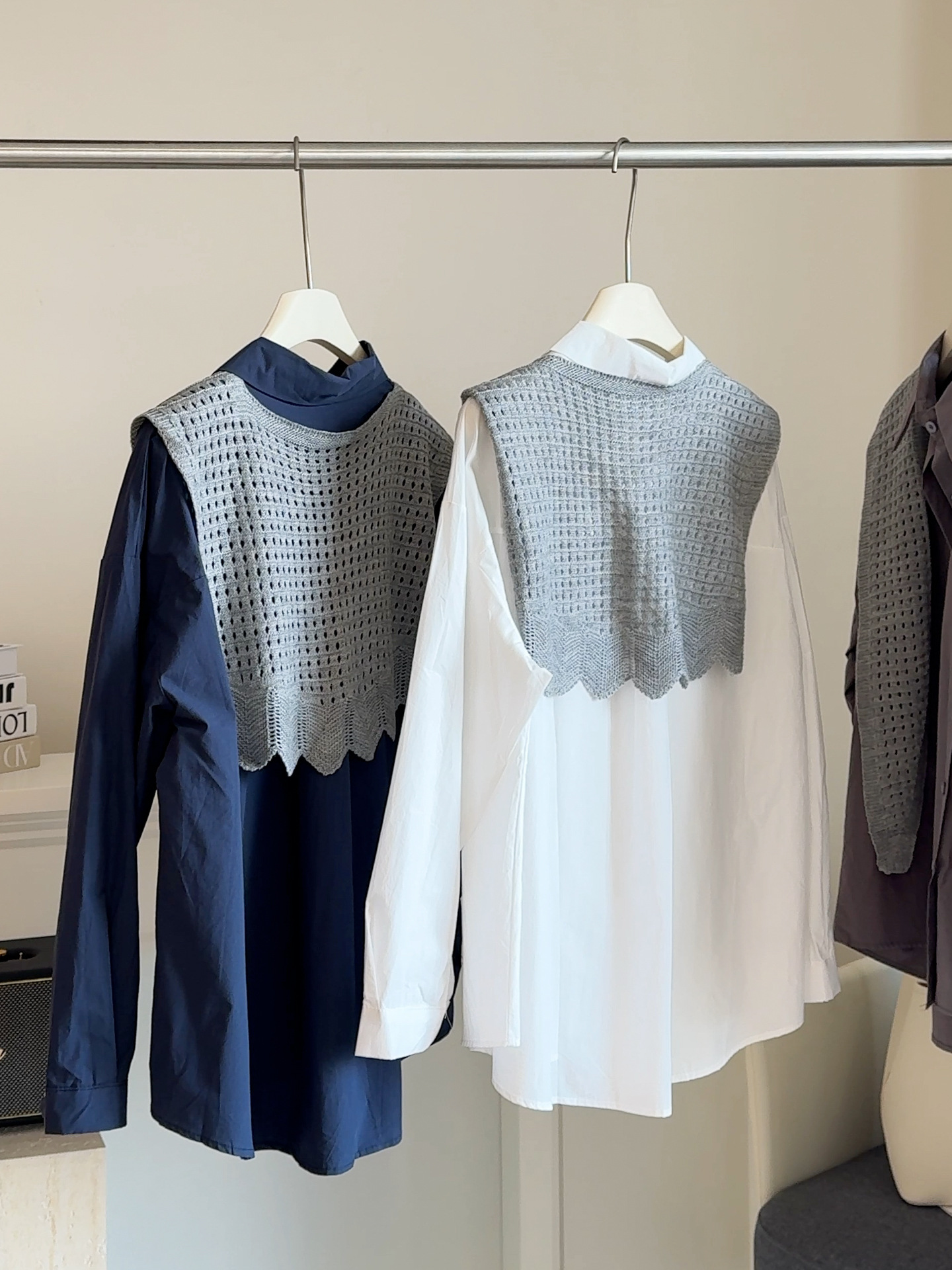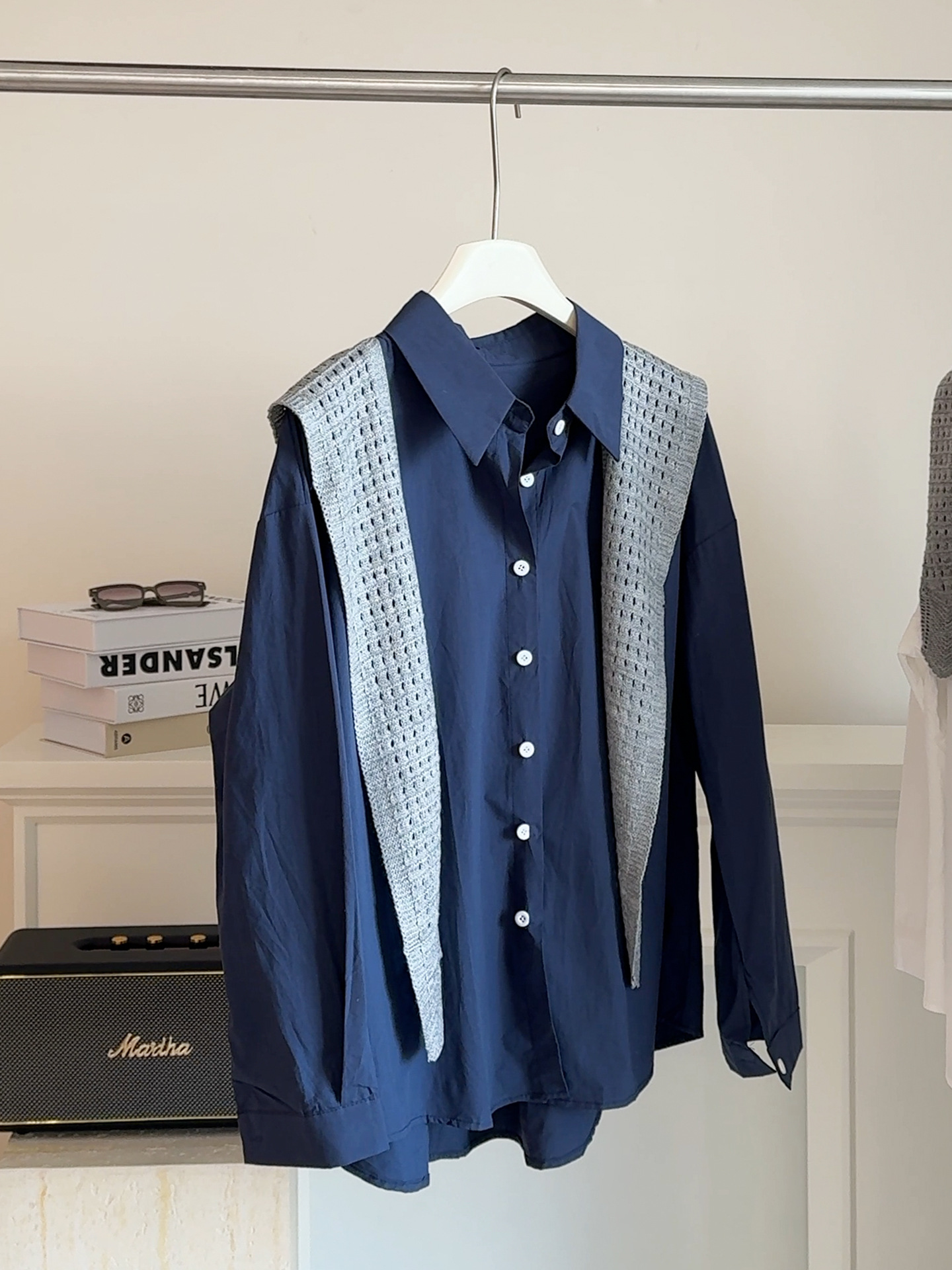 老钱风polo领衬衫女秋冬带披肩薄款宽松长袖减龄衬衣纯色通勤上衣