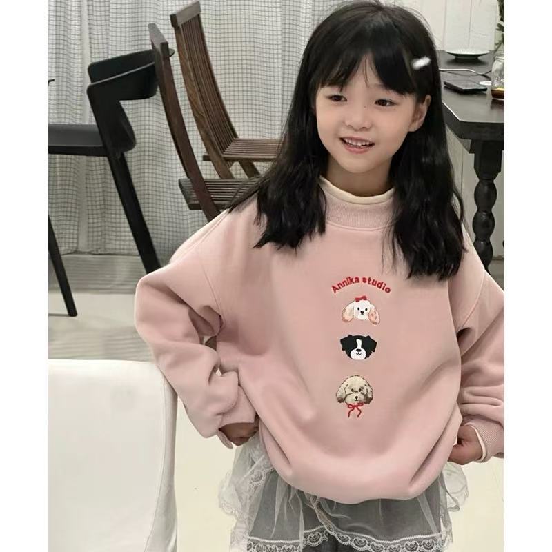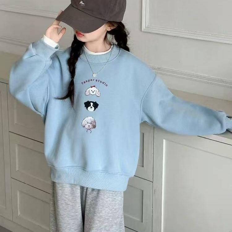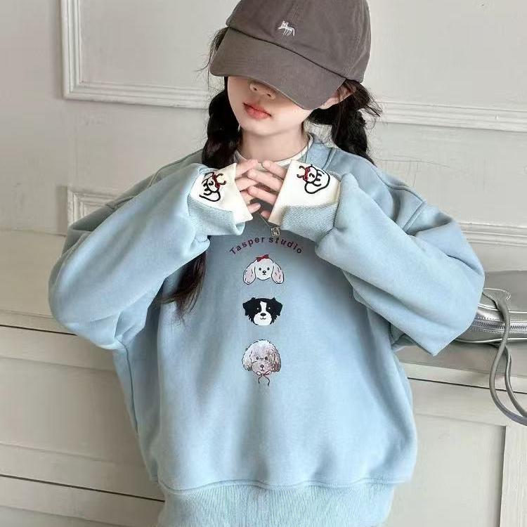熙爱2024秋冬季新款女童时尚休闲卫衣加绒圆领韩版百搭套头11063