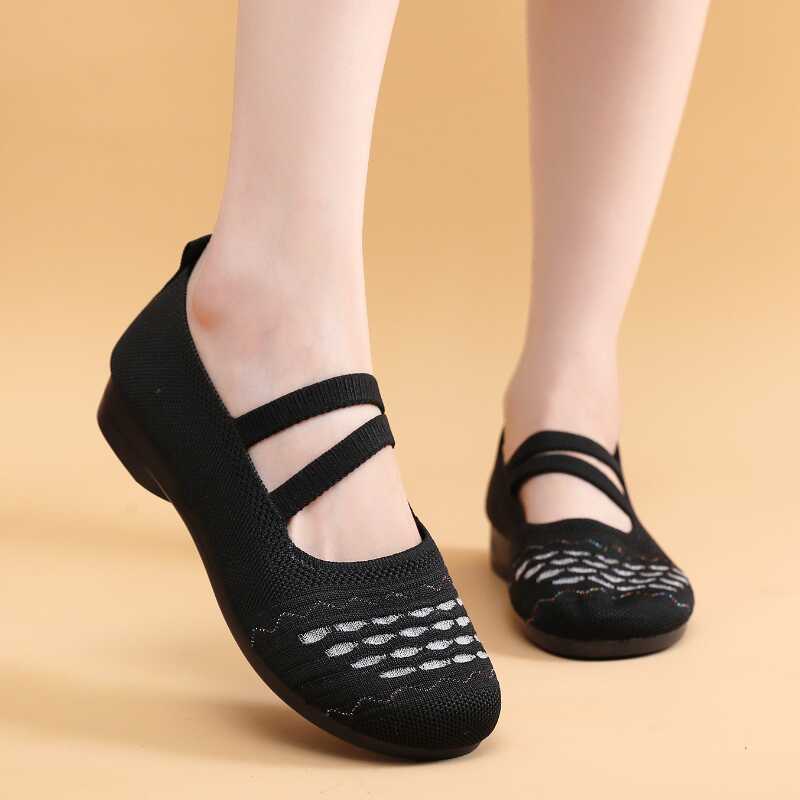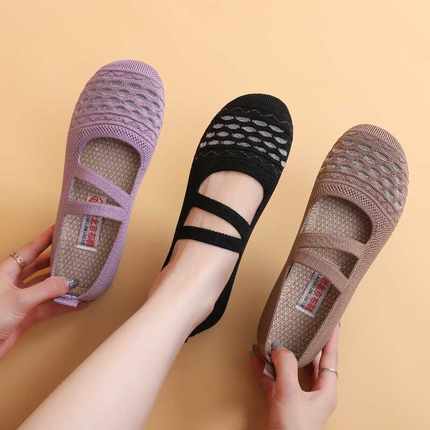 夏季老北京布鞋女网鞋透气飞织妈妈单鞋软底防滑中老年舒适休闲鞋