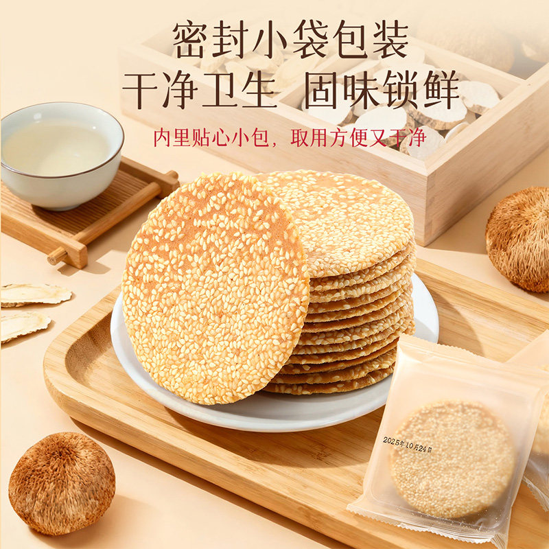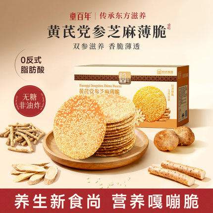 【药食同源】童百年黄芪党参芝麻薄脆饼干独立包装非油炸休闲零食
