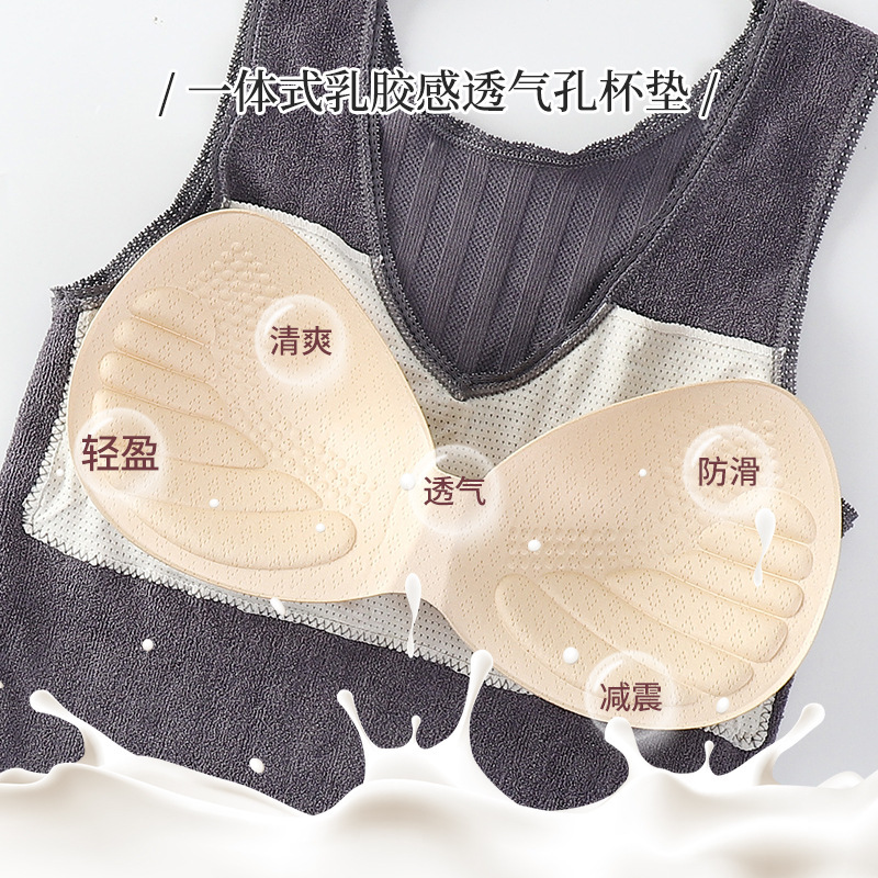 秋冬保暖保暖毛圈棉加绒加厚背心内搭外穿女士背心免穿文胸带胸垫
