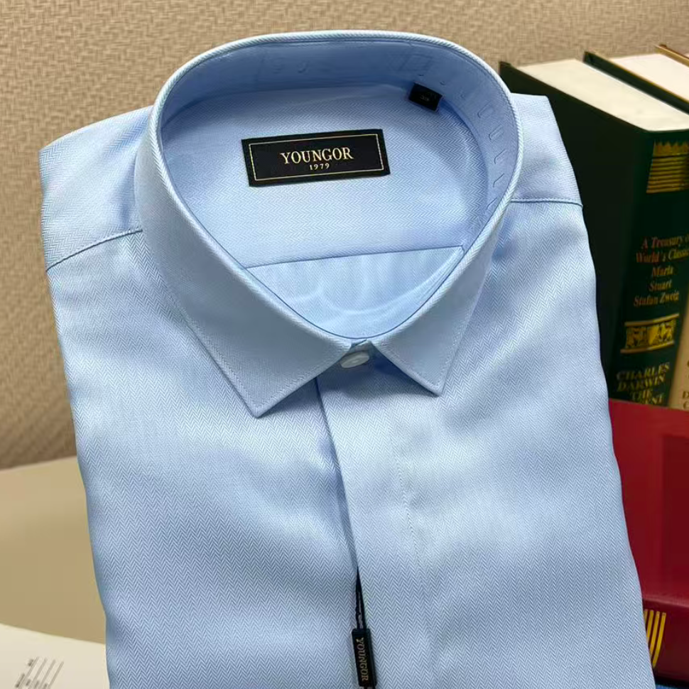 专柜1080 雅戈尔120支高端浅蓝全棉男士修身长袖衬衫119771IJY