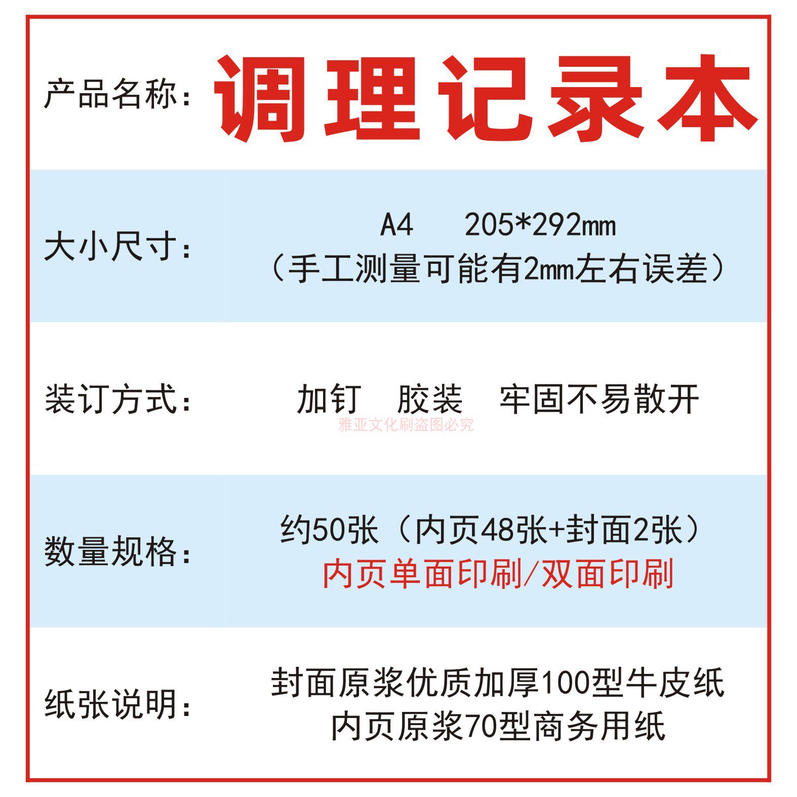 A4牛皮封调理记录本定制