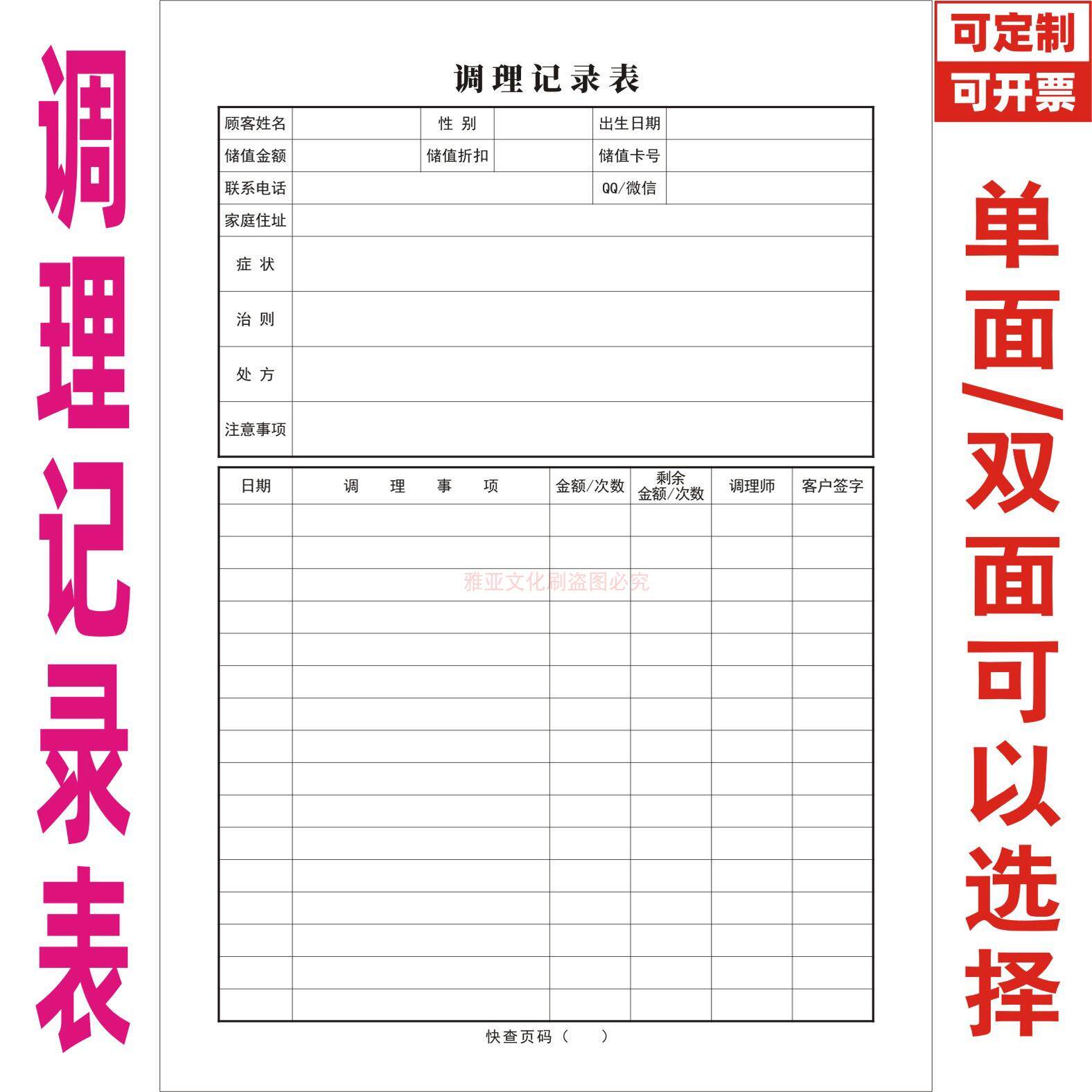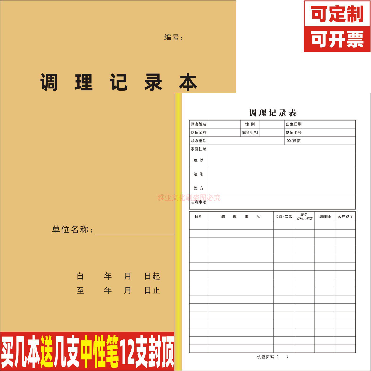 调理记录本中医门诊保健医疗美容院理疗馆养生推拿按摩顾客表定制