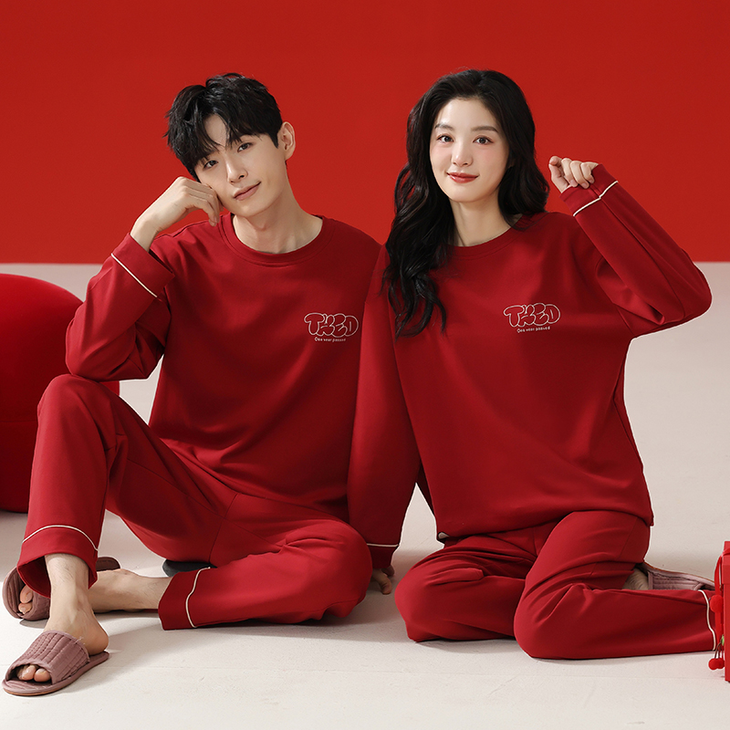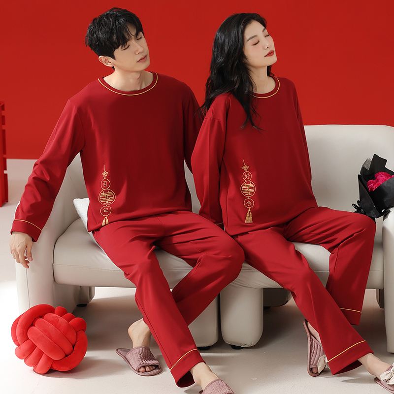 纯棉睡衣情侣结婚红色新娘套装
