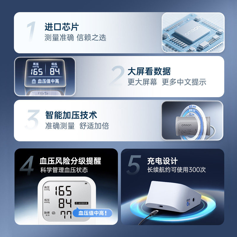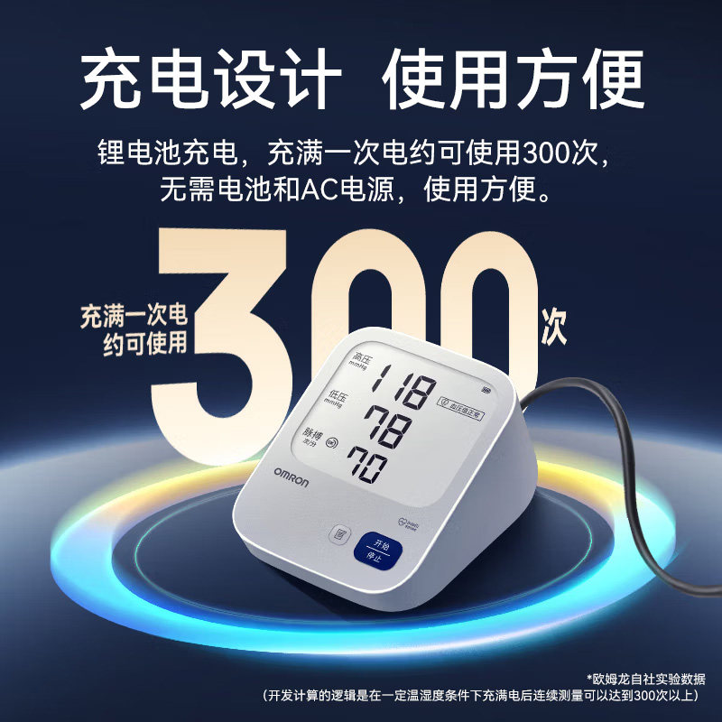 欧姆龙HEM-7522充电式血压计锂电池家用超大屏医用级测压老年人
