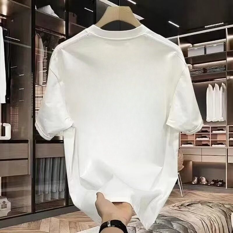 高端鸟家重磅纯棉t恤休闲半袖男士潮牌上衣宽松大码简约印花体恤