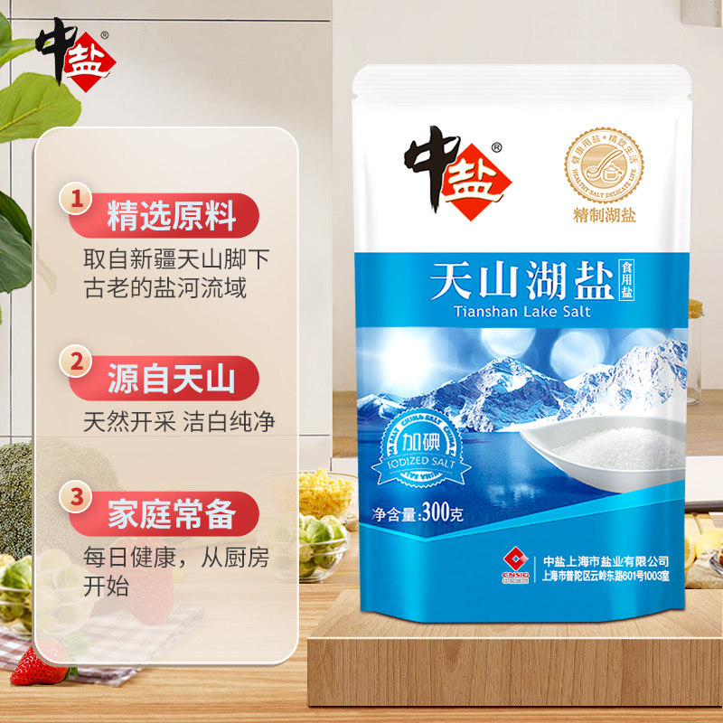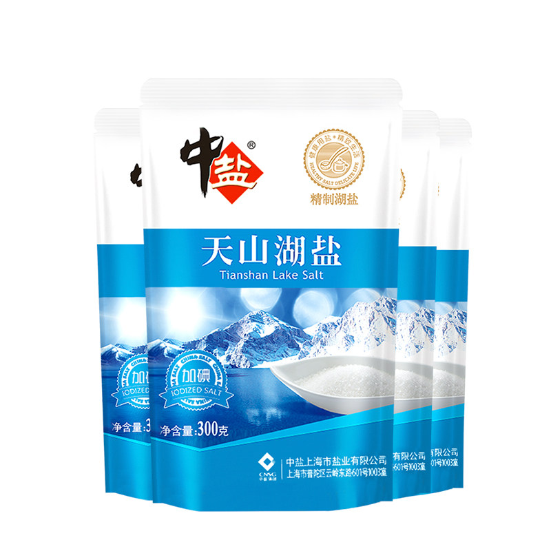 【4袋】中盐加碘天山湖盐天然湖盐不添加抗结剂家用食用盐300g