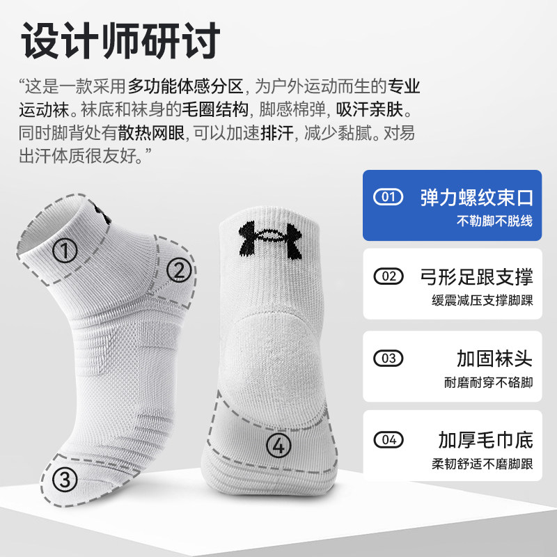 安德玛篮球袜子男士中筒短袜薄款跑步夏美式专业吸汗毛巾底运动袜