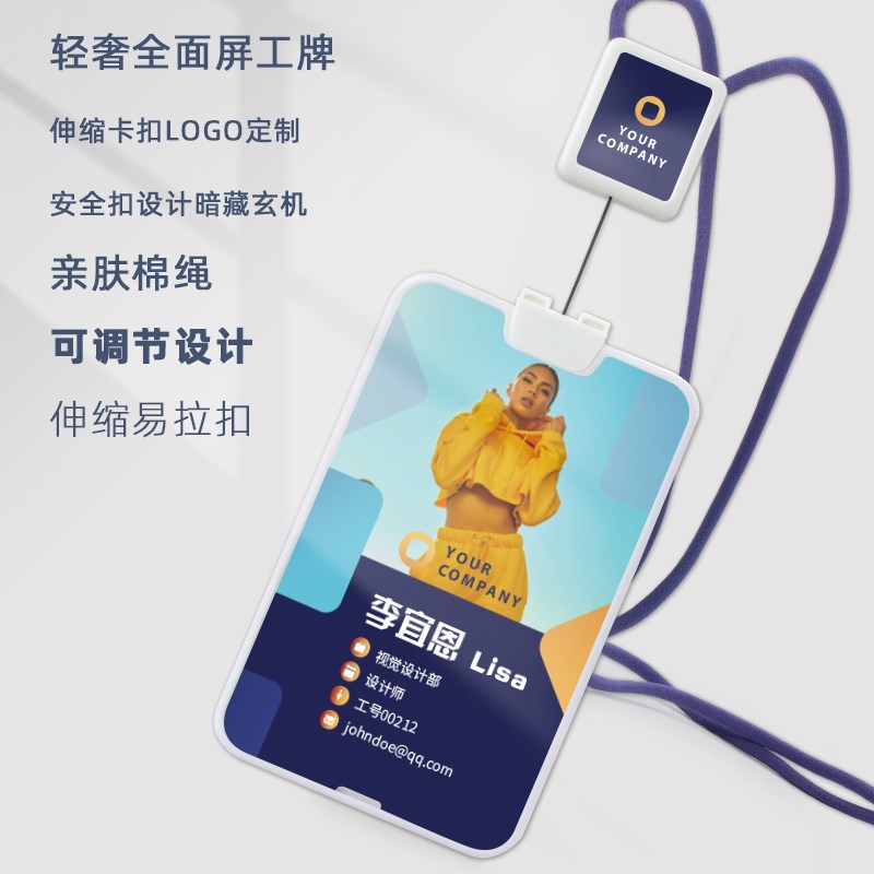 高档全面屏工作证证件套卡套带挂绳定做工牌定制透明证件套胸卡证