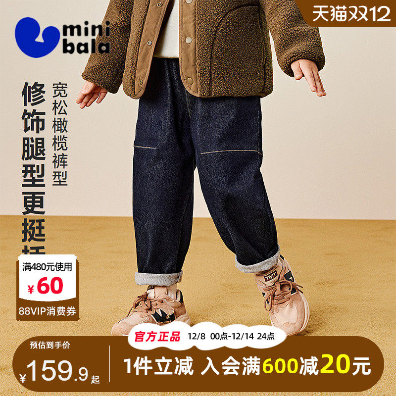 迷你巴拉巴拉男童宝宝加绒长裤2025冬装新款大童软牛仔休闲萝卜裤
