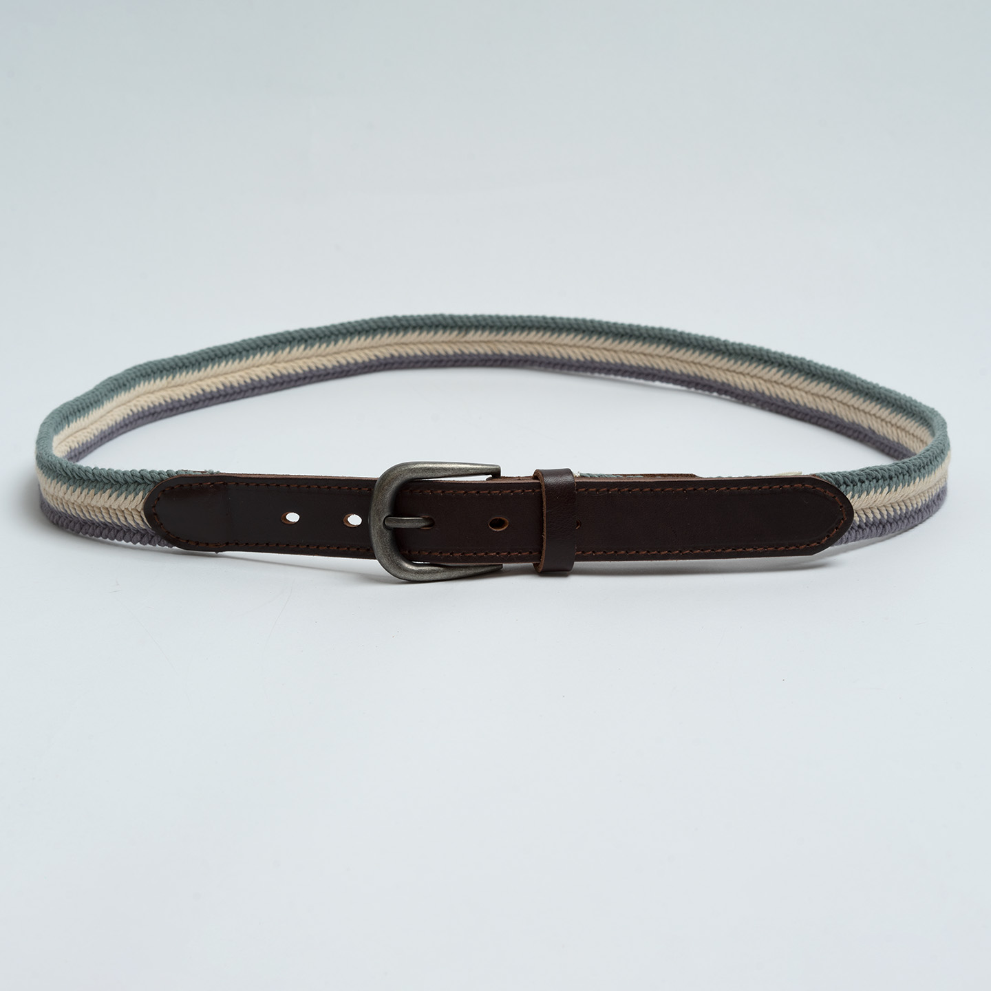 新款女士帆布腰带 春夏蓝绿编织休闲百搭 头层牛皮带拼接窄细腰带