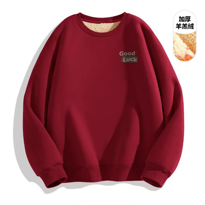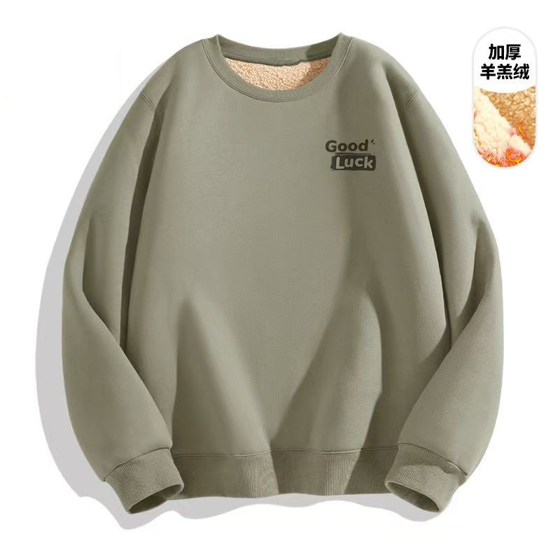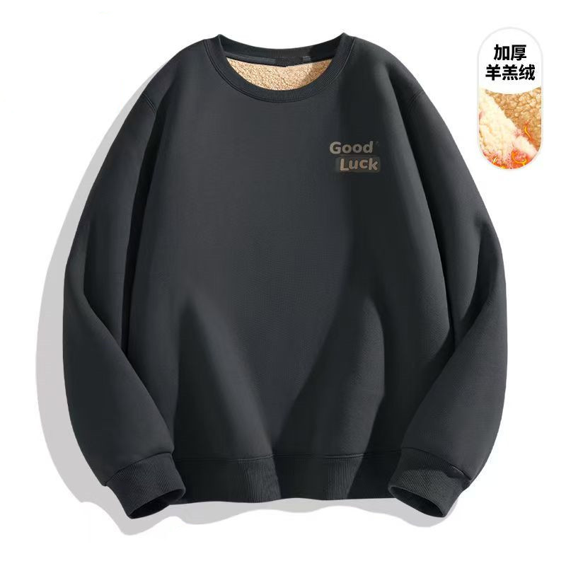 男士卫衣加绒加厚冬季青少年学生宽松保暖圆领套头羊羔绒上衣12