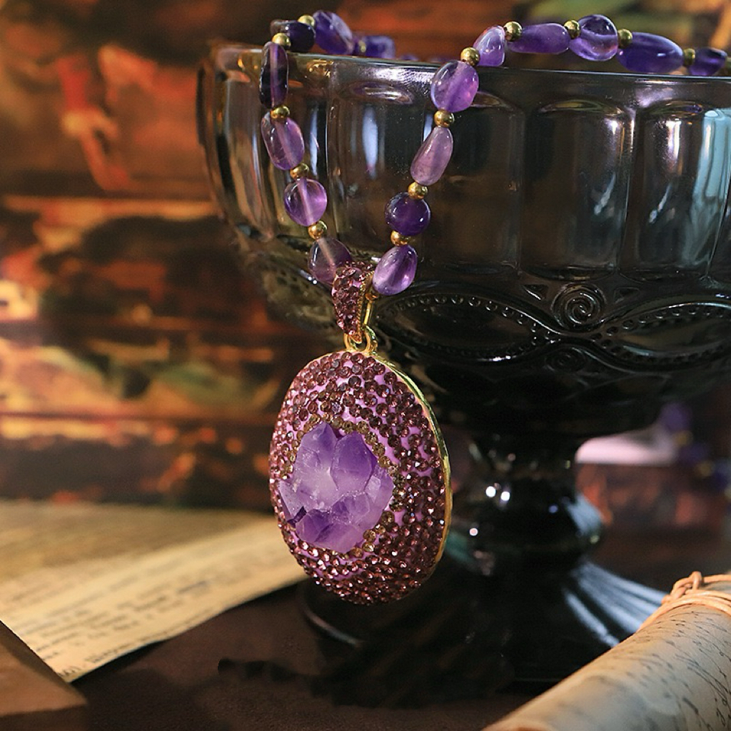 新款天然紫水晶随形原创设计款女士款项链毛衣链小众轻奢饰品