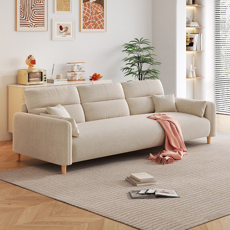 奶油风客厅澳粒绒布皮艺沙发小户型家用一字型直排现代简约2024