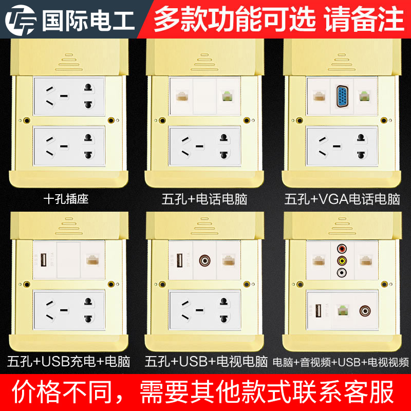 国际电工平推式地插地板面插座全铜防水隐形家用网络滑盖超薄盖板