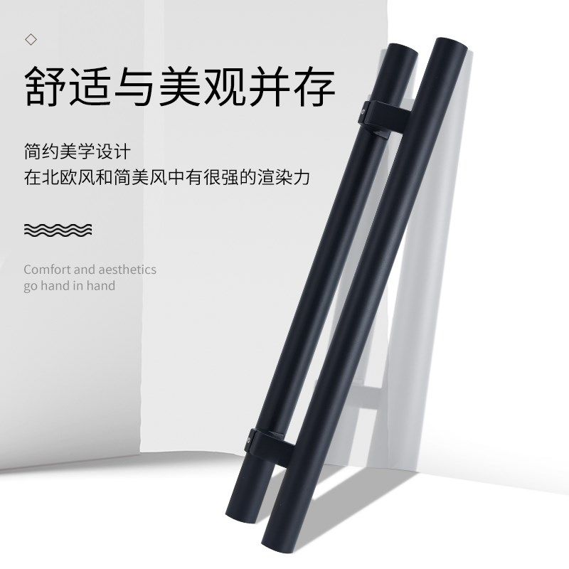 玻璃门拉手不锈钢黑色加厚侧w装脚推拉扶手木门大门把手磨砂黑现