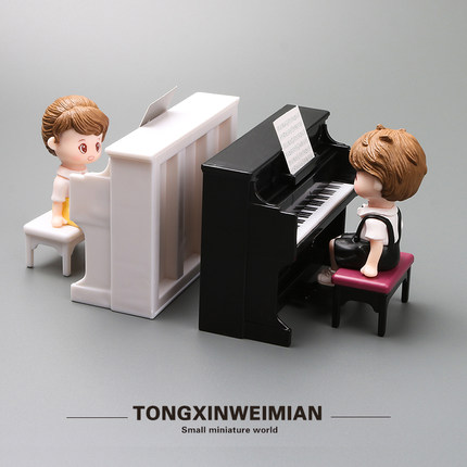 仿真可爱迷你钢琴微缩乐器模型玩具儿童娃娃屋配件家具摆件过家家