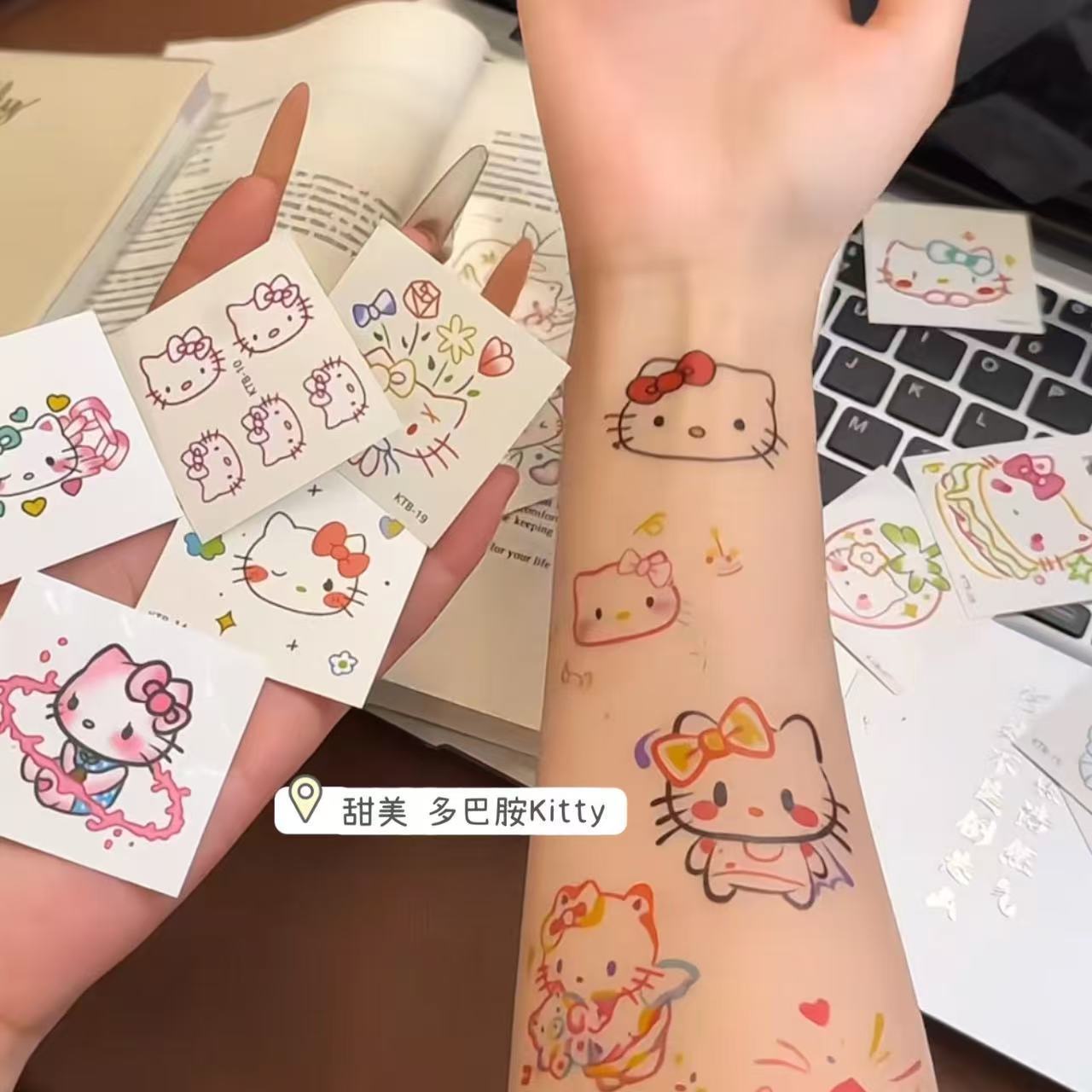 多巴胺草本kitty猫纹身贴可爱防水持久手臂贴纸ins风可洗送人闺蜜