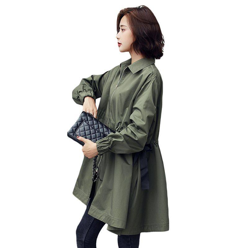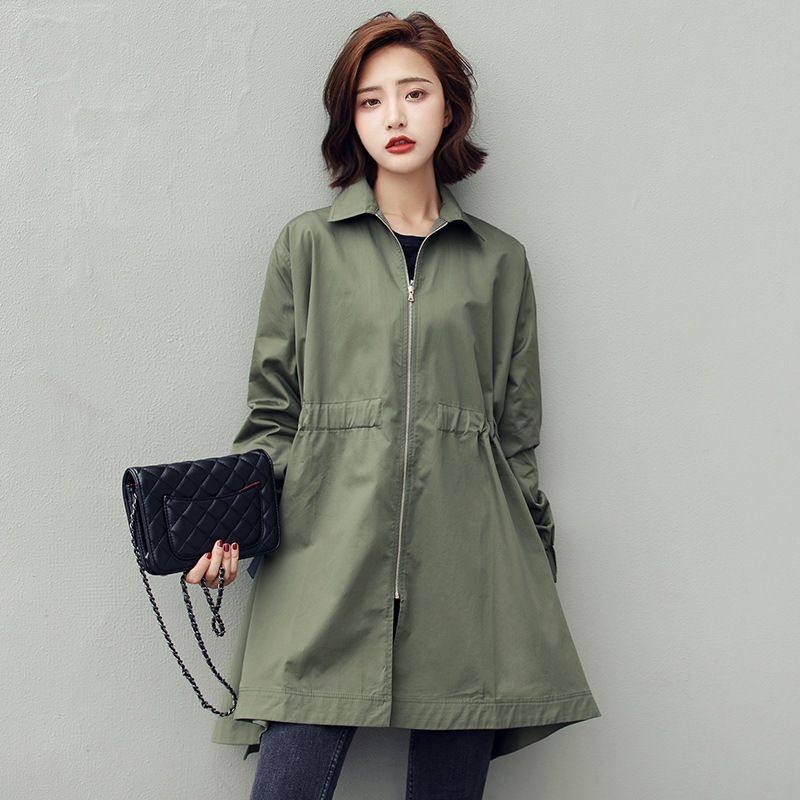 木瓜牛奶风衣外套女中长款韩版春秋新款军绿色大码休闲长袖春秋装