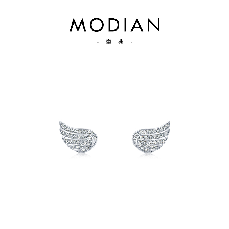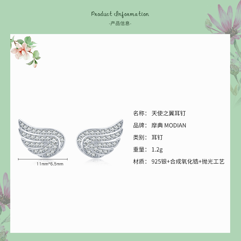摩典高级感小众设计耳钉s925纯银镶钻天使翅膀可爱简约耳环耳饰女