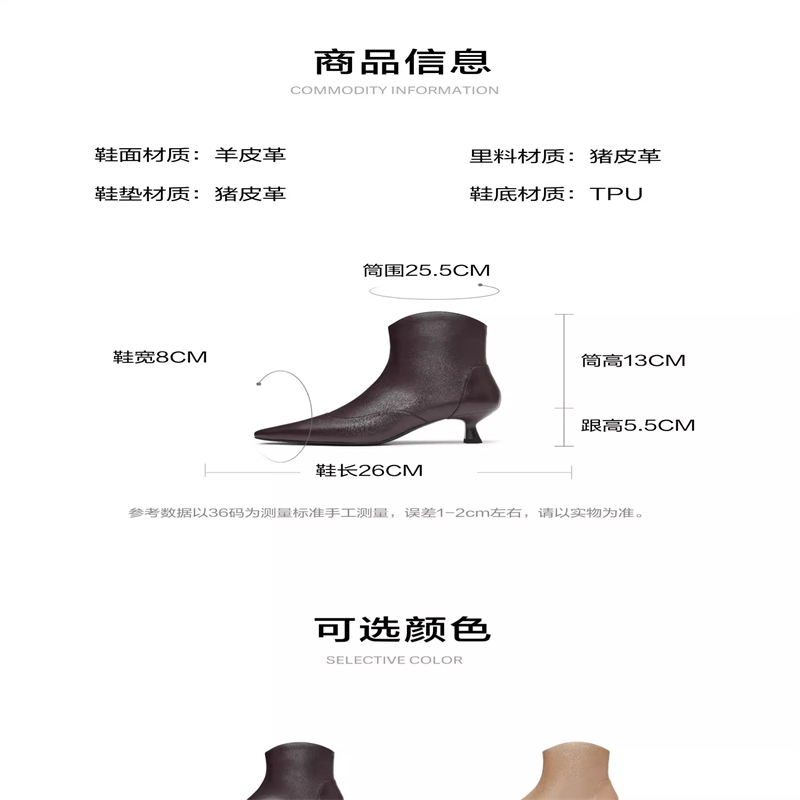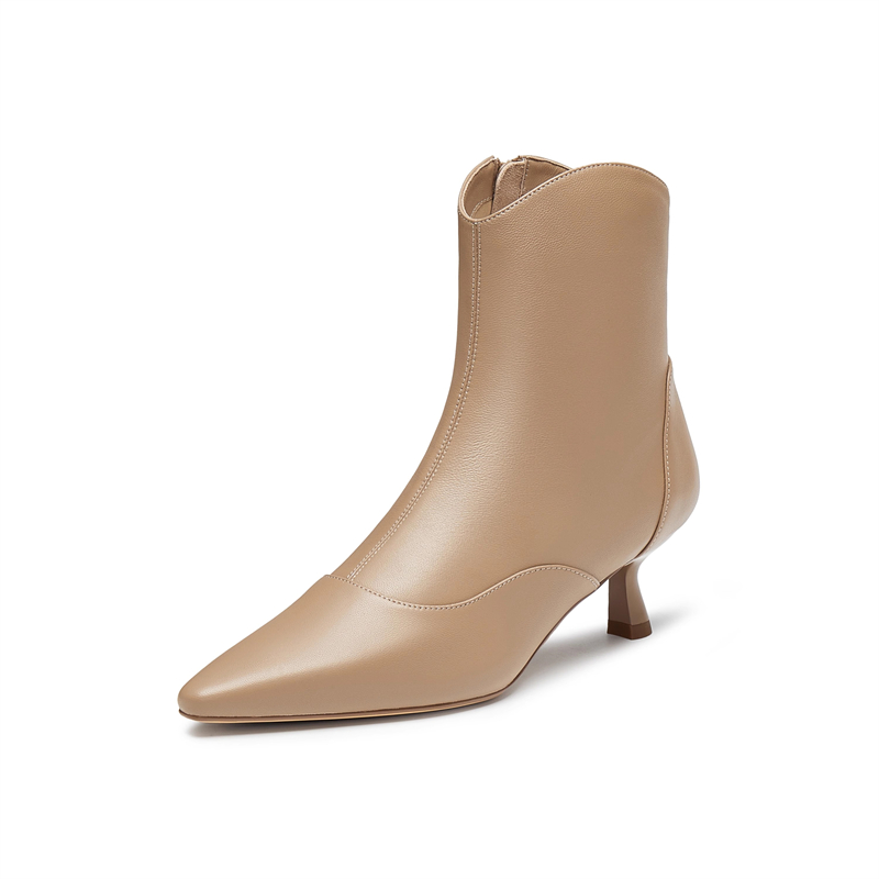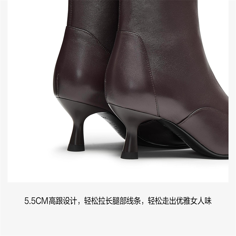 真美诗2024冬季新女鞋软面真皮简约大气尖头女时装靴女靴YZP02DD4