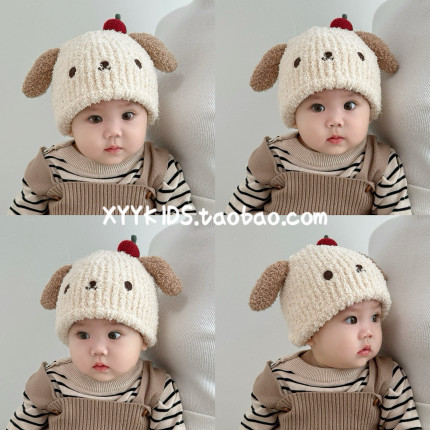 宝宝帽子冬季男女儿童毛线帽针织保暖护耳秋冬款婴幼儿毛绒帽韩版
