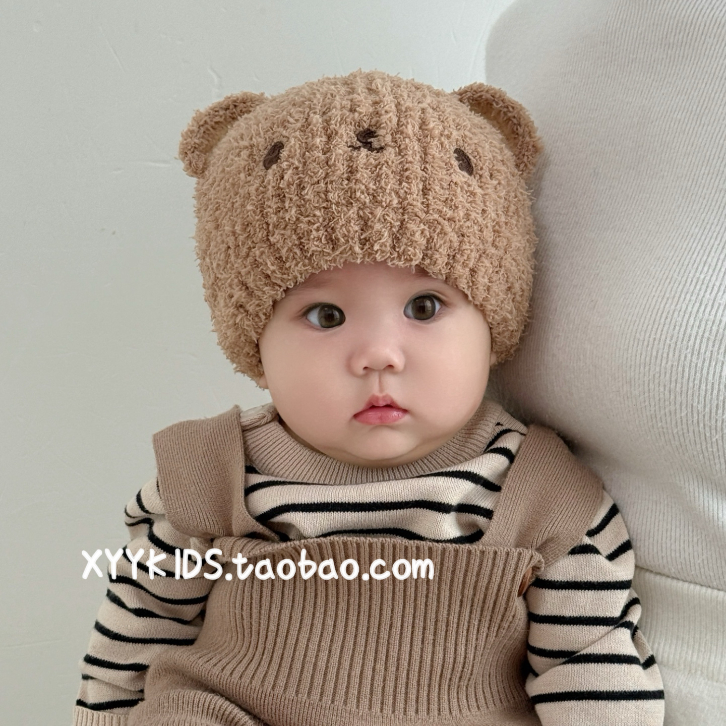 宝宝毛绒帽可爱超萌护耳套头帽韩