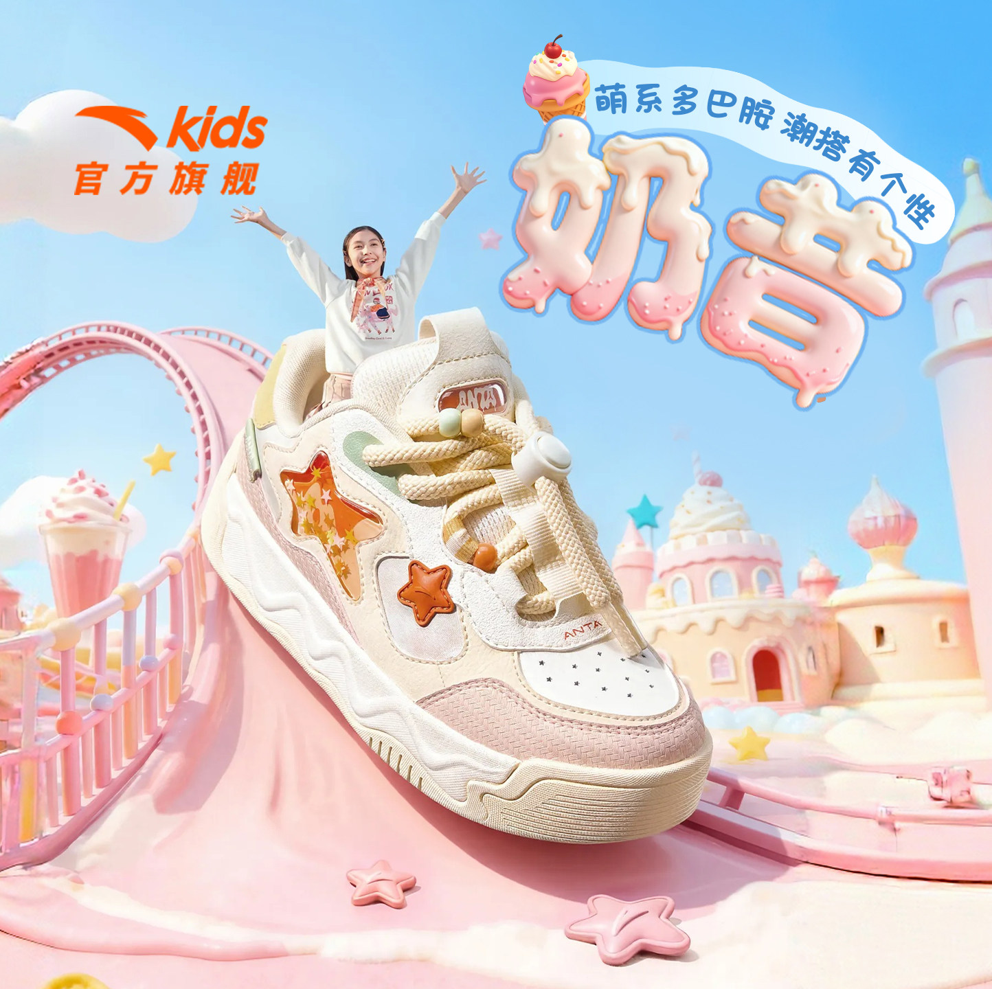 奶昔2新年款安踏儿童女大童板鞋2026新款上新耐磨女孩时尚潮流款