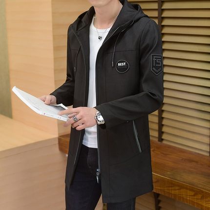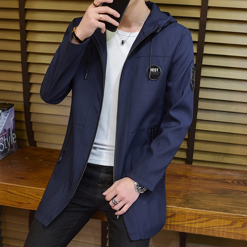 2021新款男士外套春秋季韩版潮流修身夹克外衣中长款风衣薄款褂子
