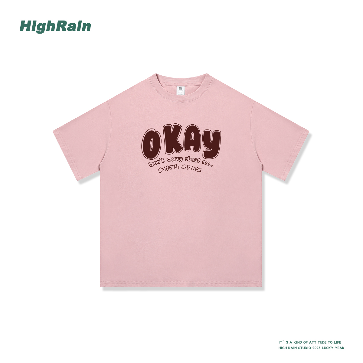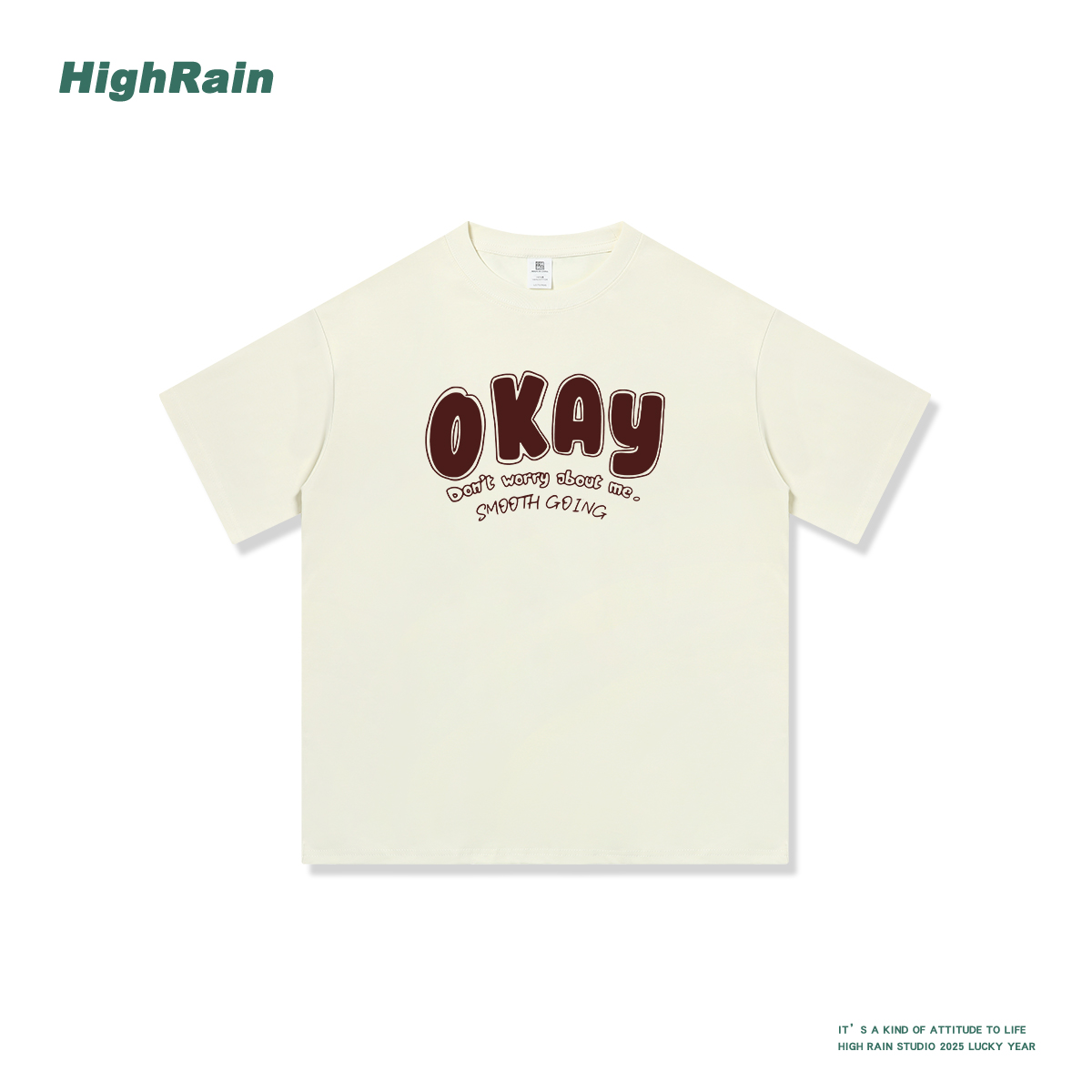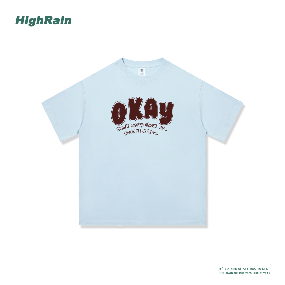 HIGH RAIN美式简约字母潮牌设计感小众纯棉百搭短袖T恤女宽松上衣