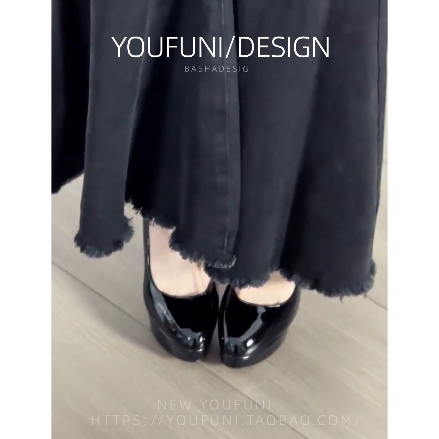 羊皮版~欧美风漆皮圆头高跟鞋女真皮超高跟防水台浅口单鞋宴会鞋