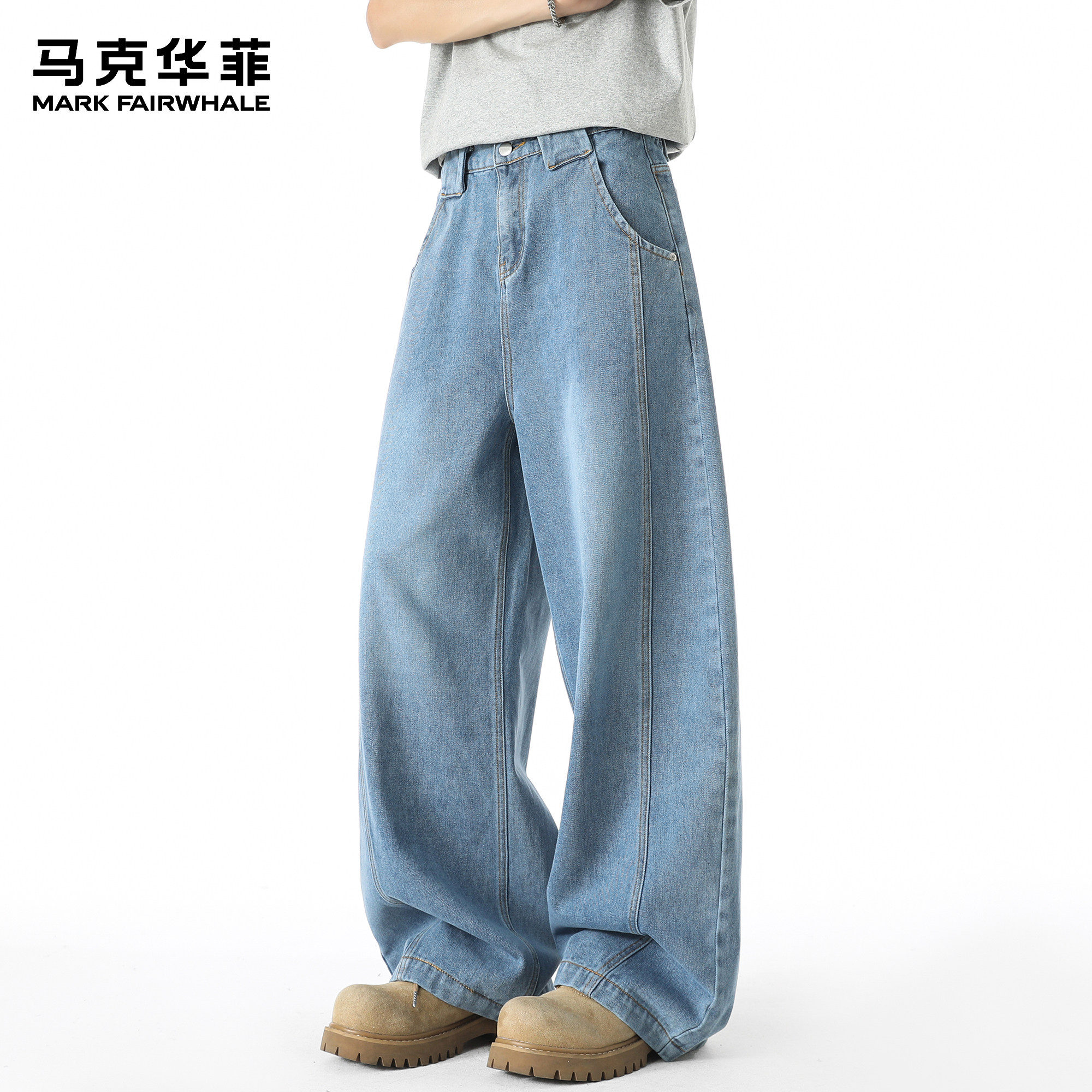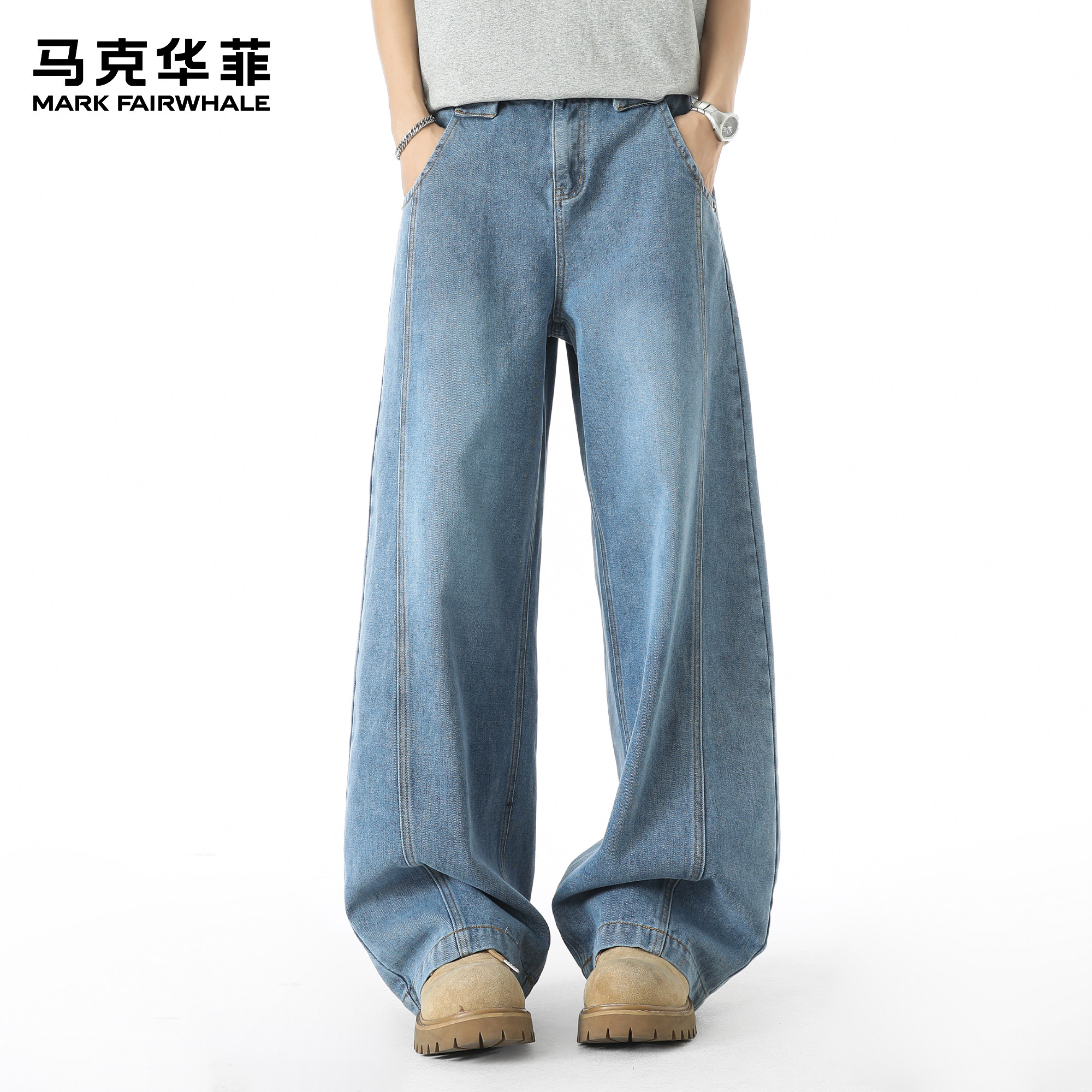 马克华菲牛仔裤男2025新款潮牌美式拼接复古青少年垂感宽松弯刀裤