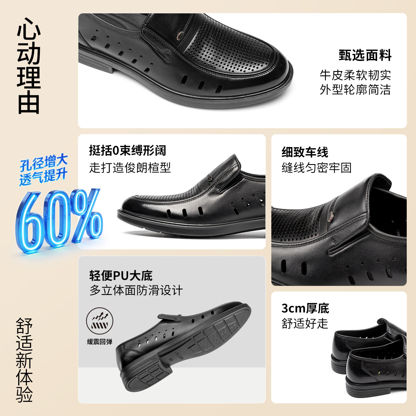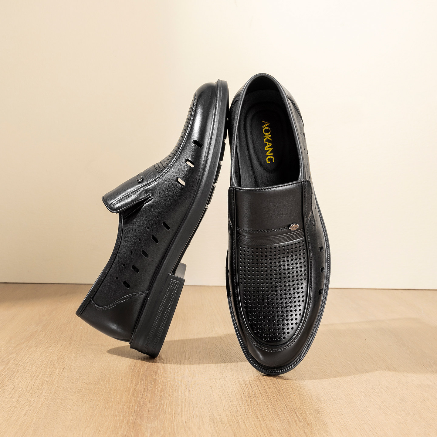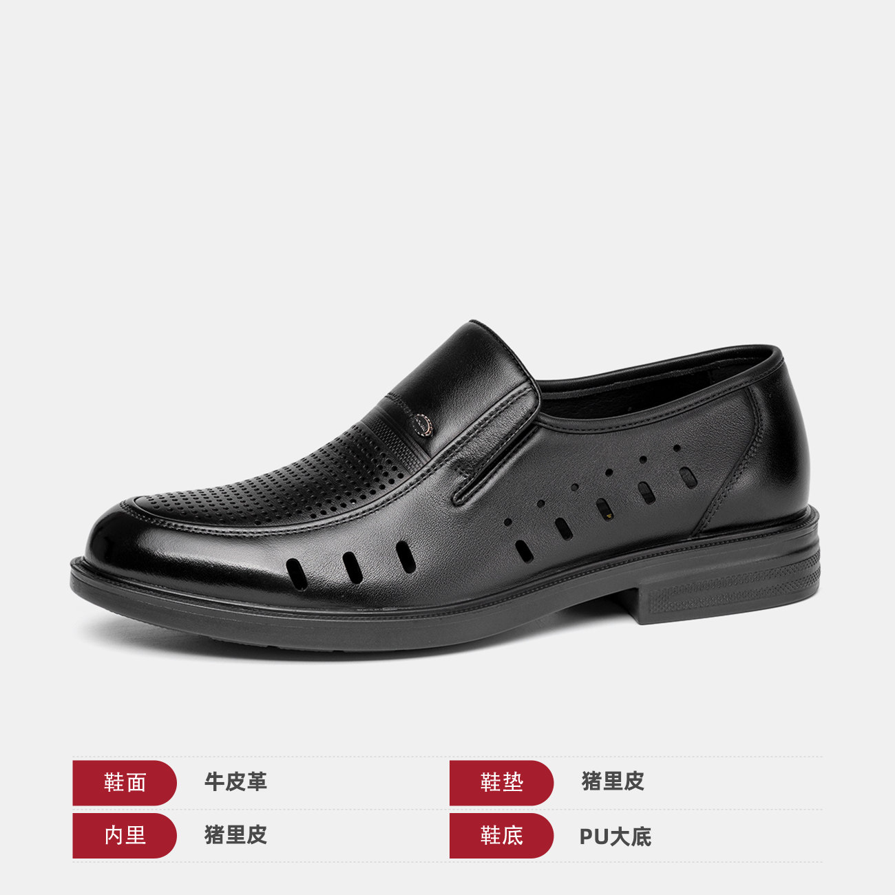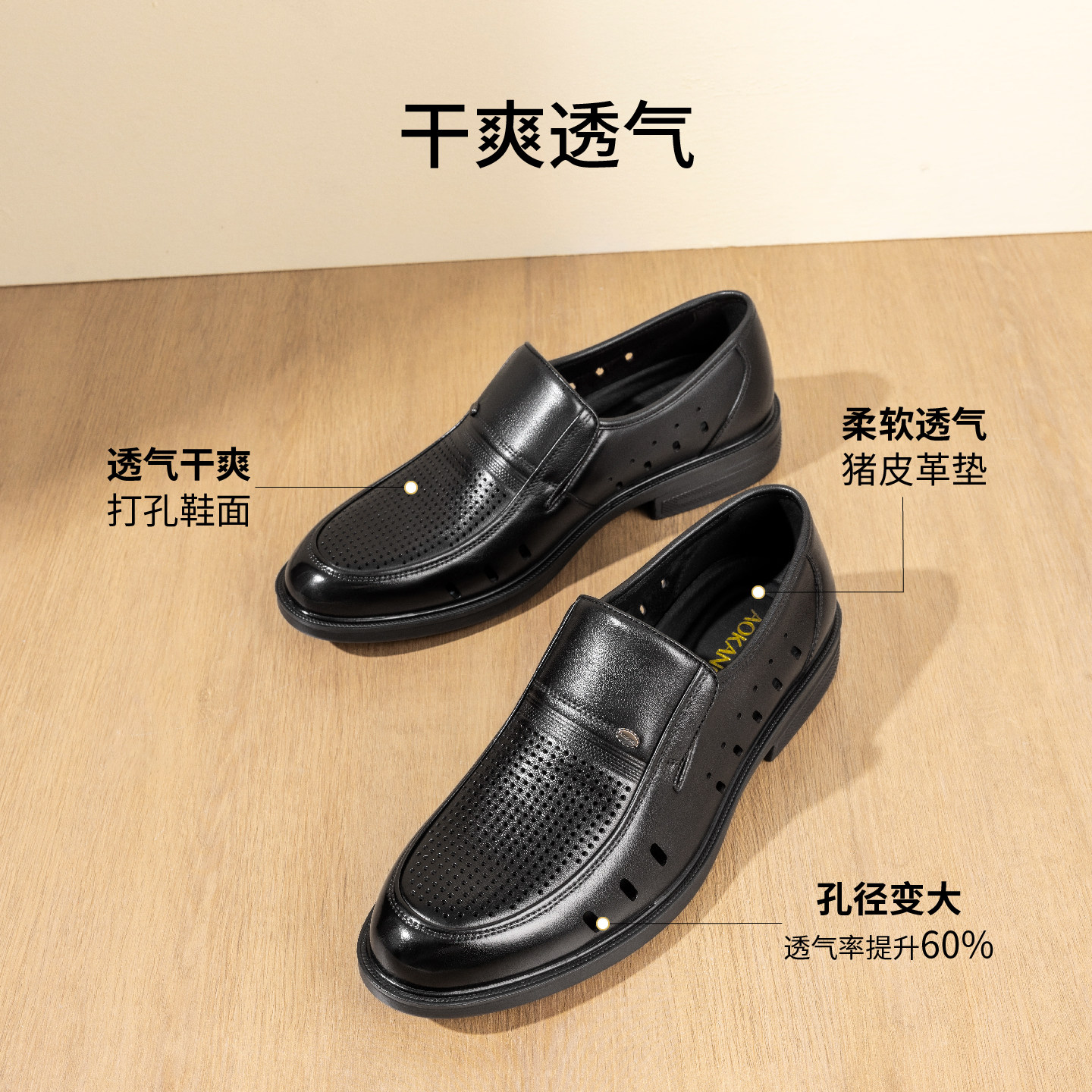 奥康2026春夏季新款打孔透气休闲皮鞋懒人一脚蹬软底舒适镂空皮鞋