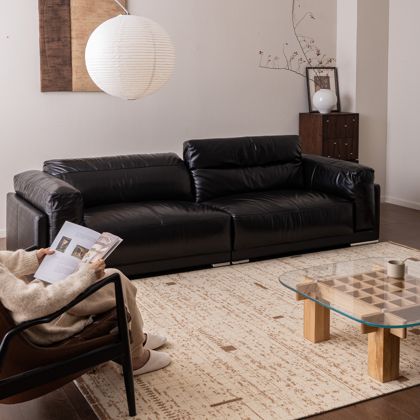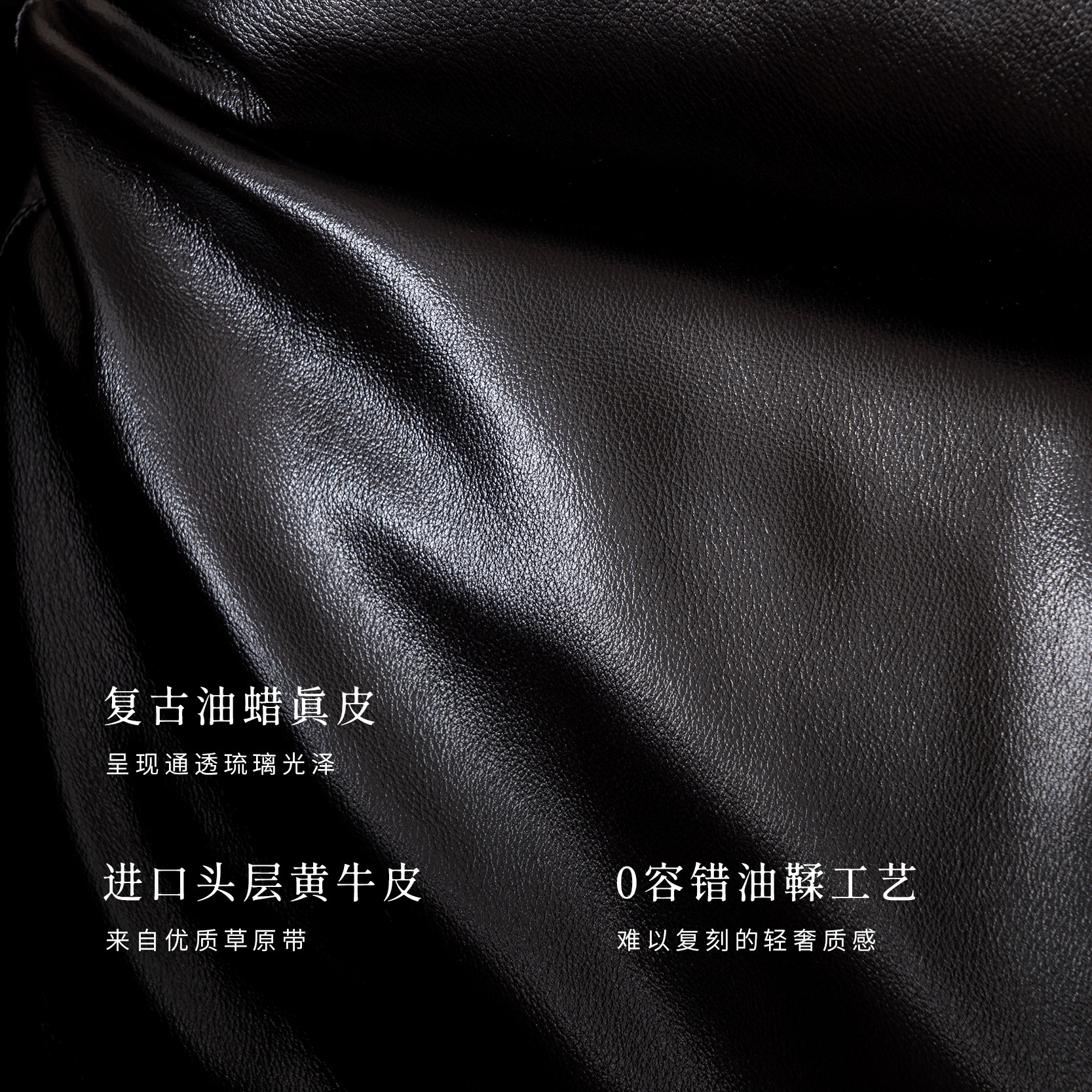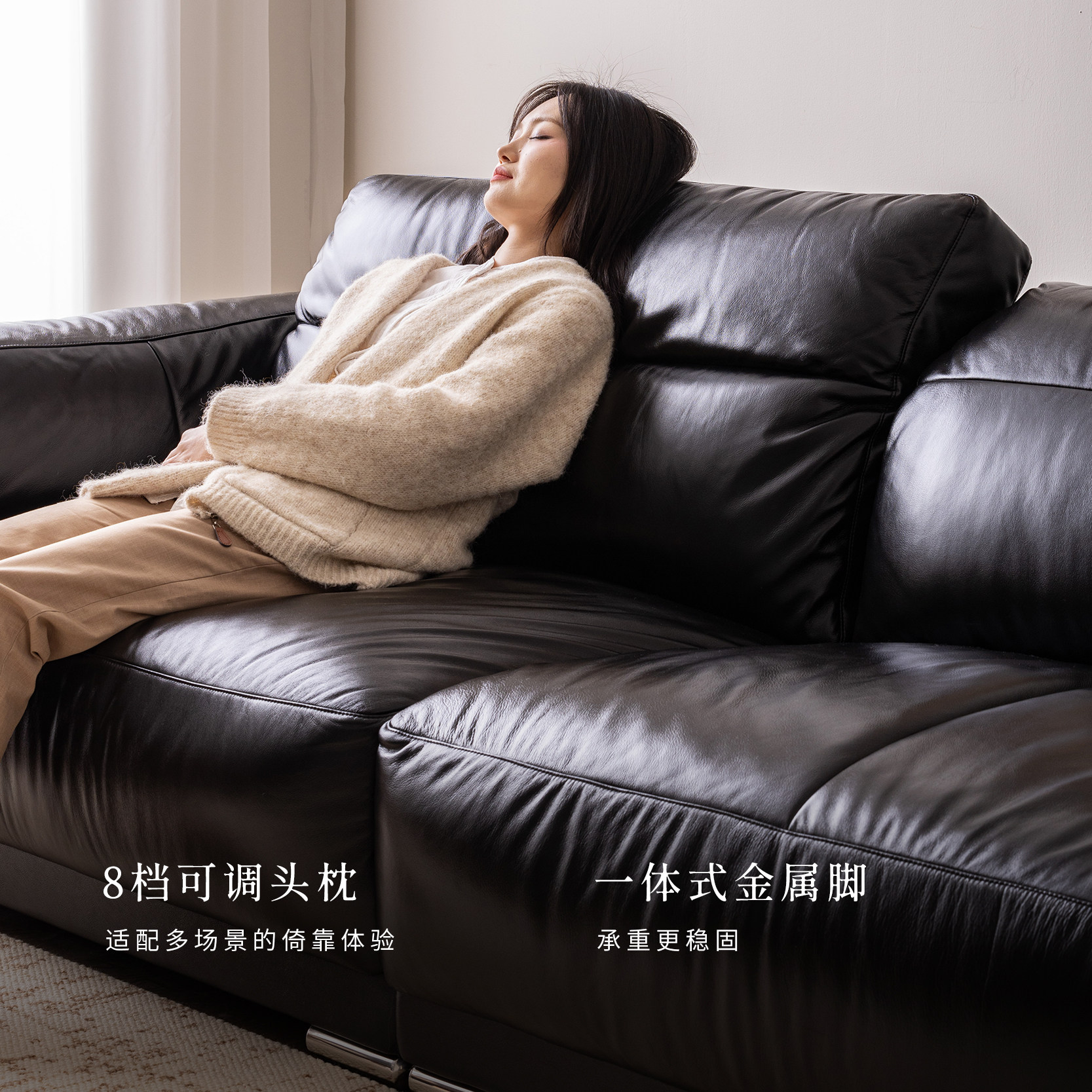 支吾曜石真皮沙发大黑牛中古风黑色油蜡皮客厅直排沙发政府补贴
