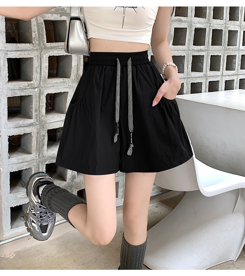 300斤大码胖mm粉色休闲短裤女夏季薄款抽绳高腰宽松a字速干阔腿裤