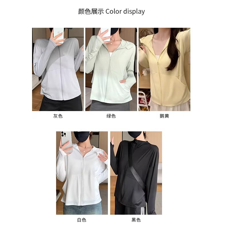 白色冰丝透气防晒衣女2025夏季薄款开衫外套防紫外线连帽防晒服