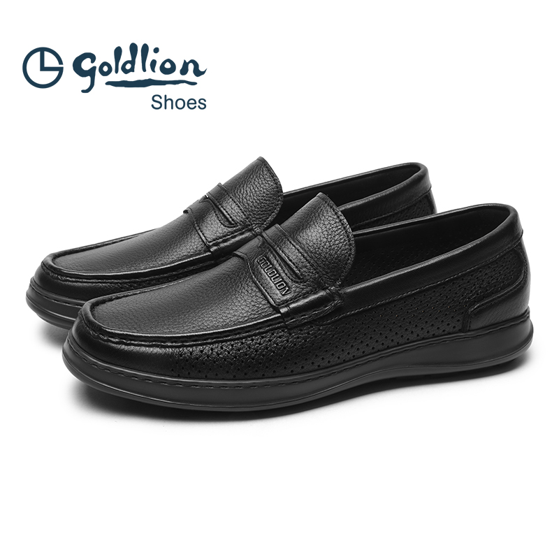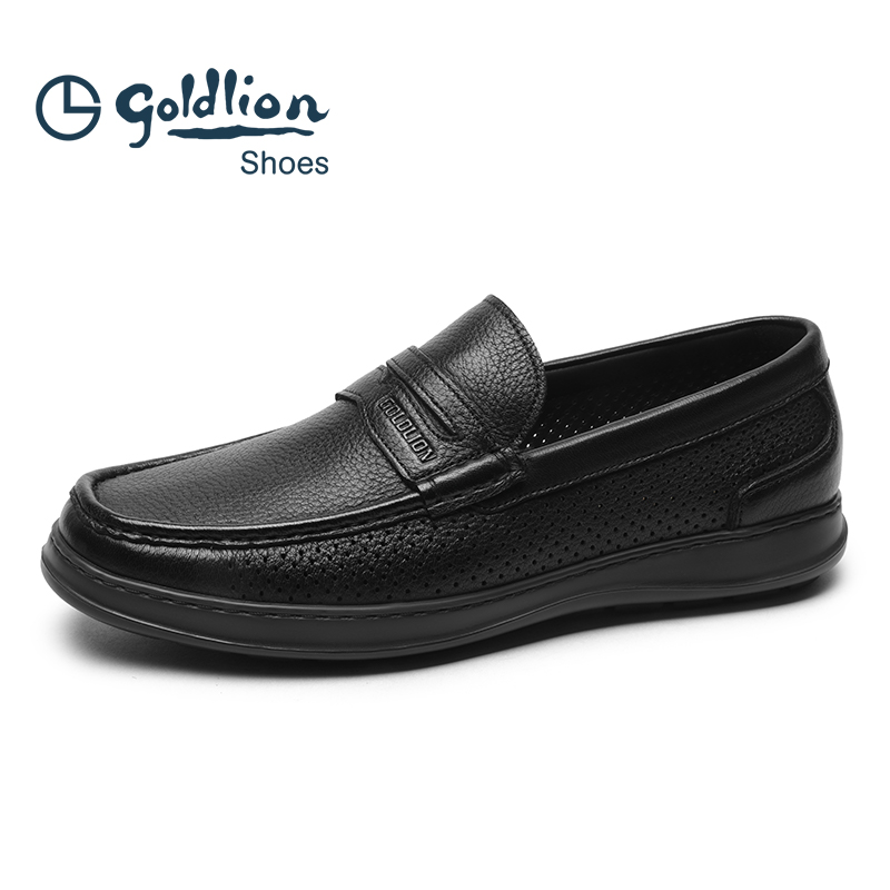 金利来男鞋2025新款鹿皮商务休闲鞋真皮透气一脚蹬潮镂空冲孔轻便