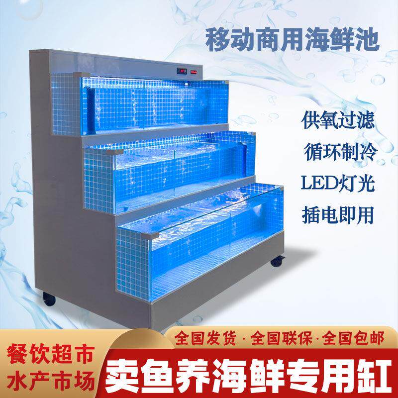 超市水产市场移动海鲜池饭店鱼缸贝类池商用恒温制冷All