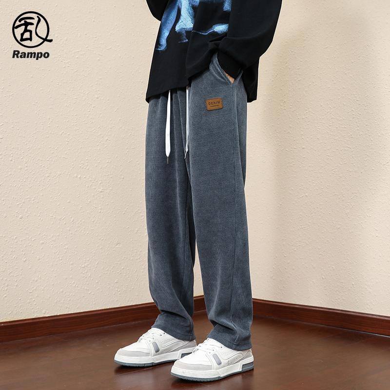 日系潮牌纯色灯芯绒裤子男士秋季宽松阔腿裤运动休闲vibe直筒长裤