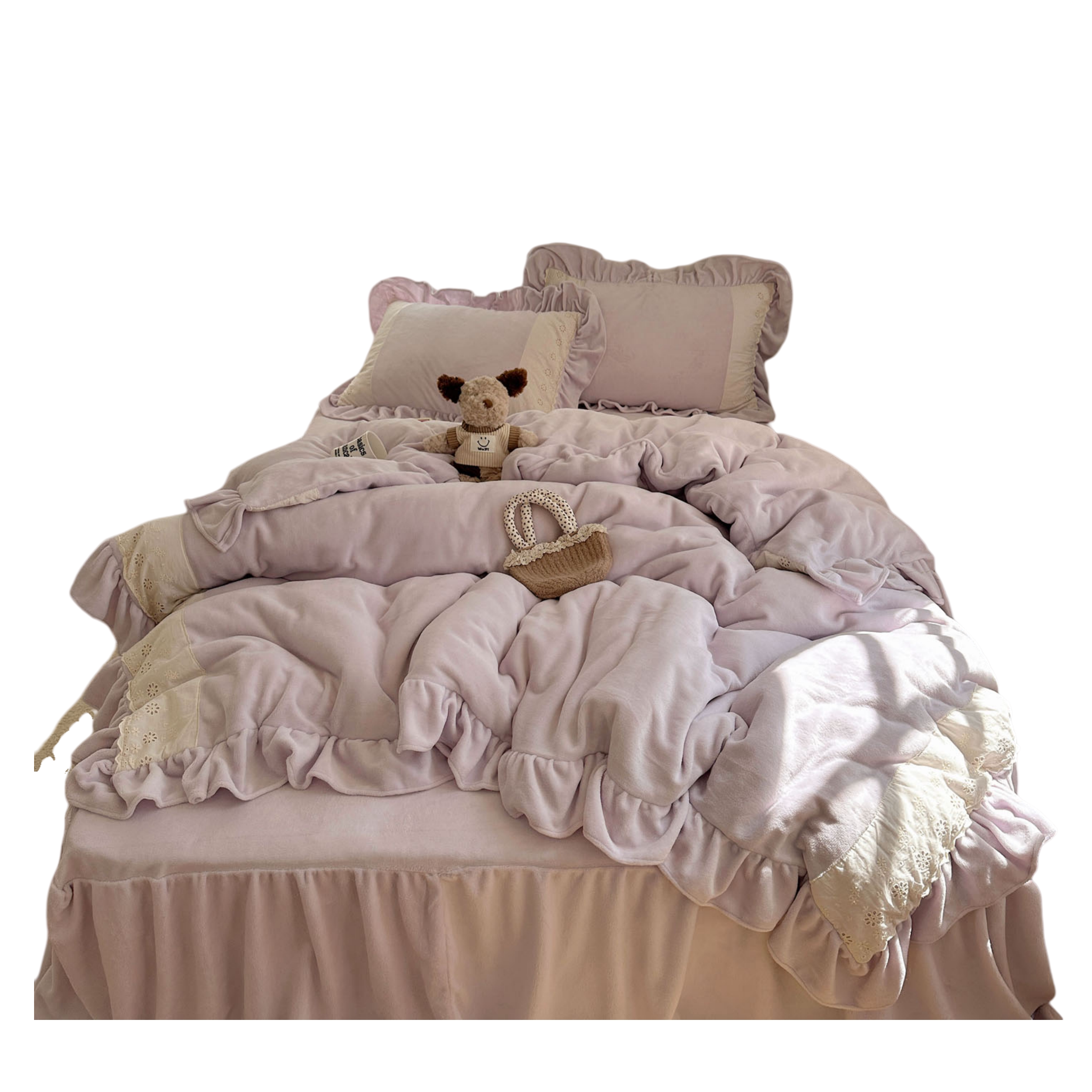 浪漫法式花边牛奶绒床裙四件套