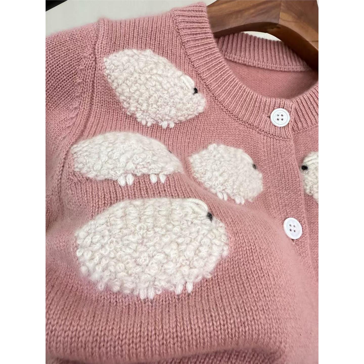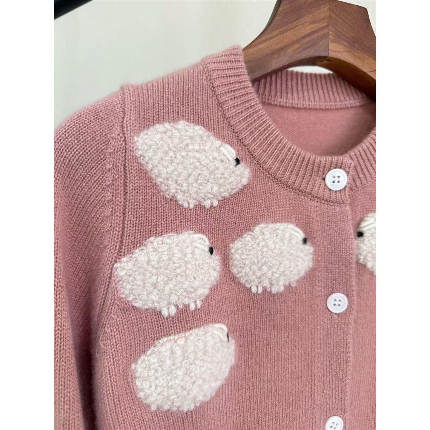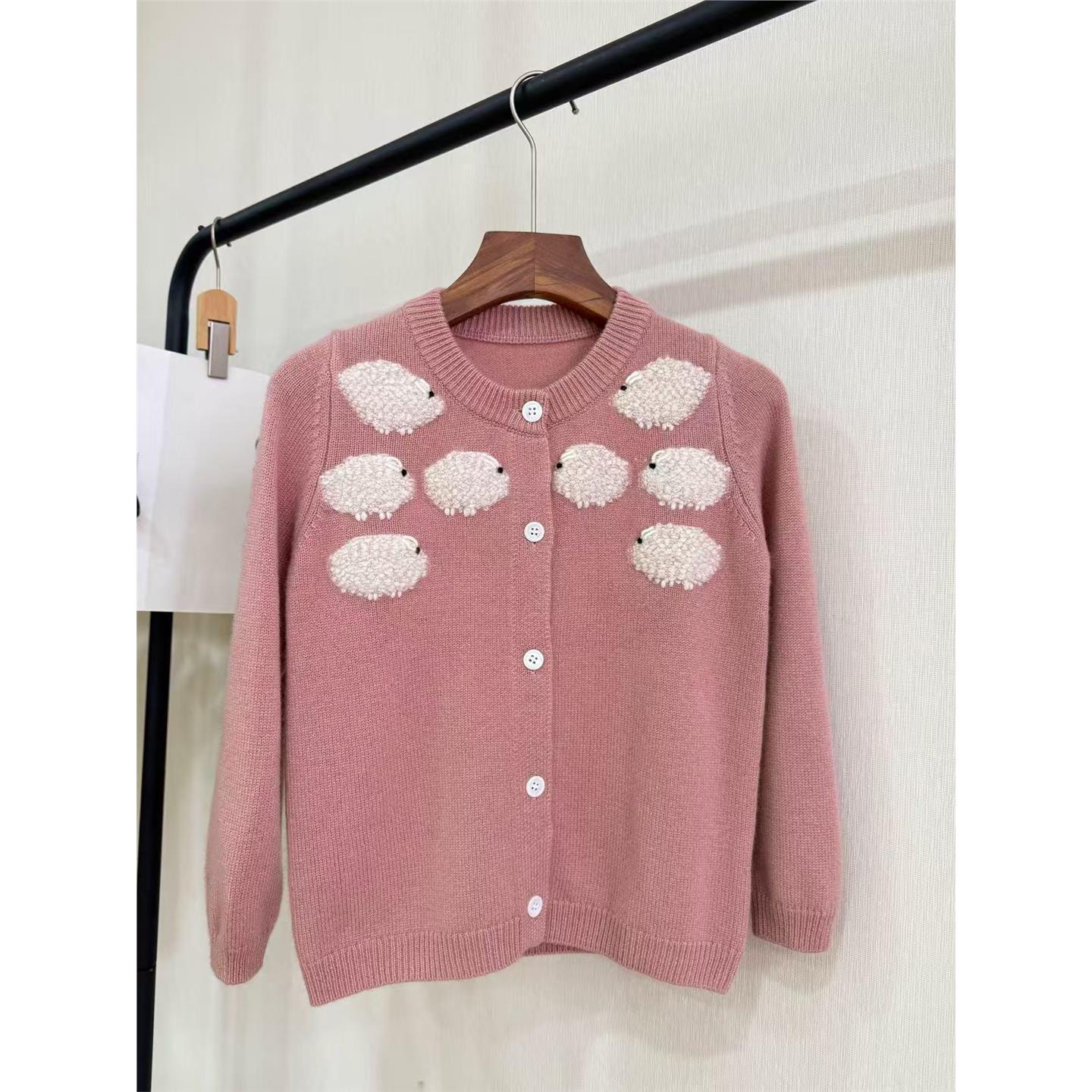 童趣小羊,纯山羊绒加厚开衫女童针织毛衣外套