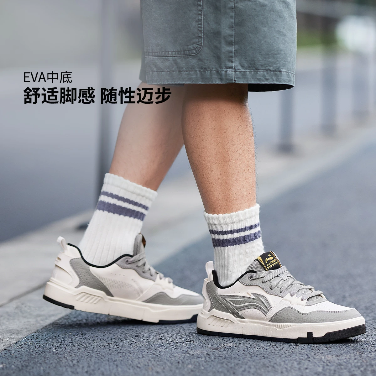 李宁元初男鞋舒适轻便板鞋经典小白鞋百搭黑鞋厚底休闲鞋AGCU337