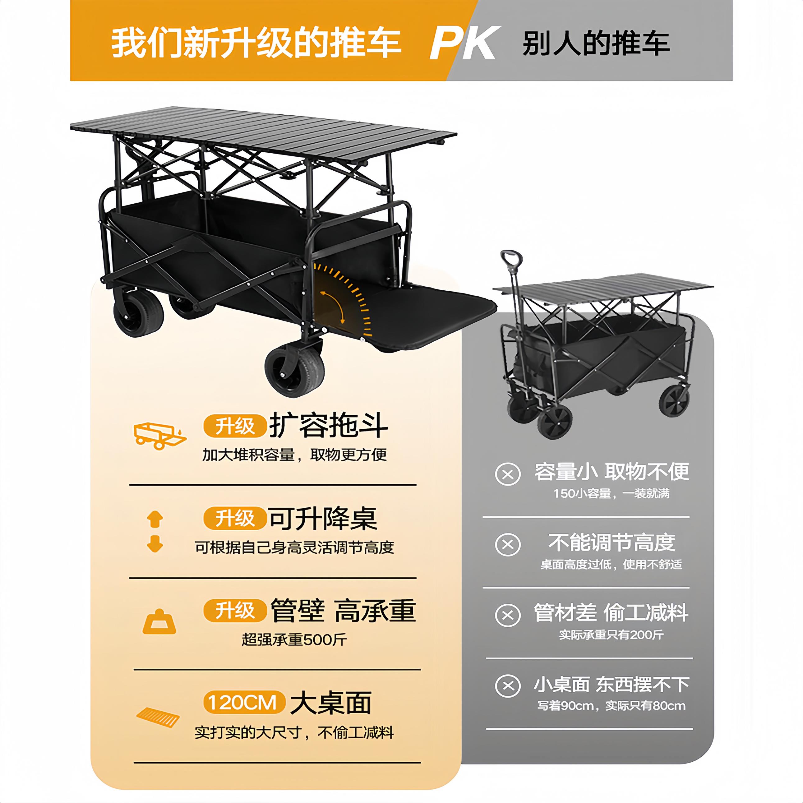 摆摊小推车地摊专用升降折叠桌夜市拉车户外营地露营野餐车便携式
