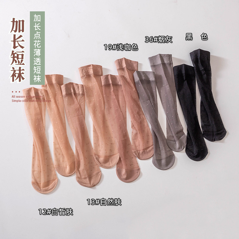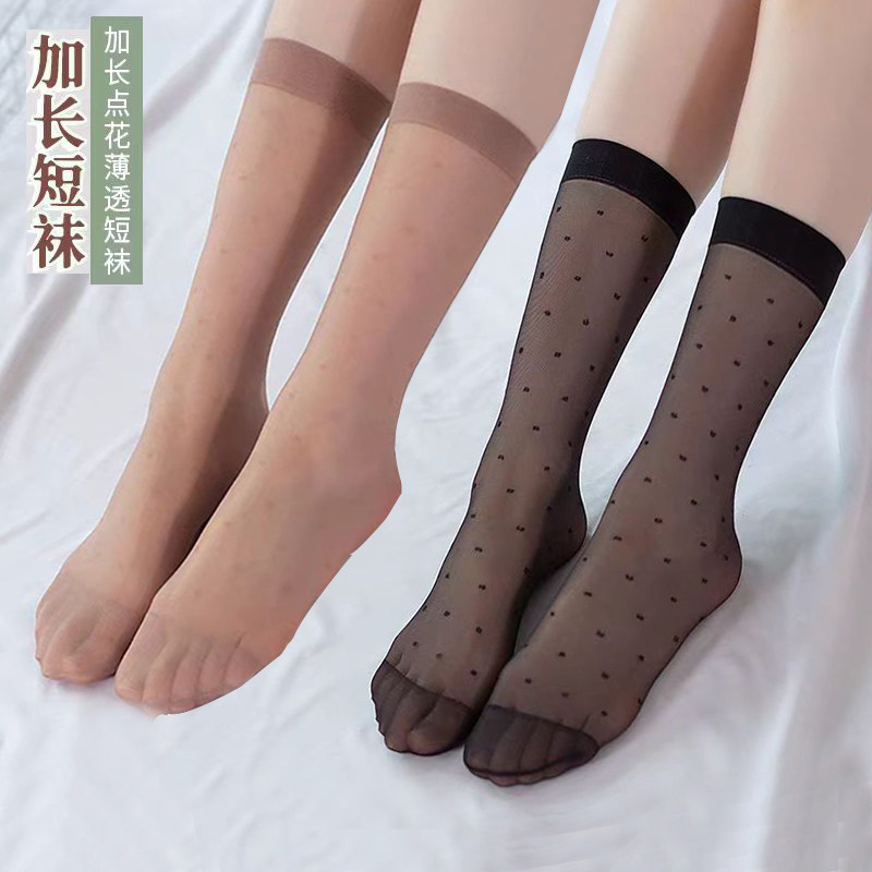 永春加长波点短丝袜春夏季女超薄高透复古圆点提花防勾丝中筒短袜