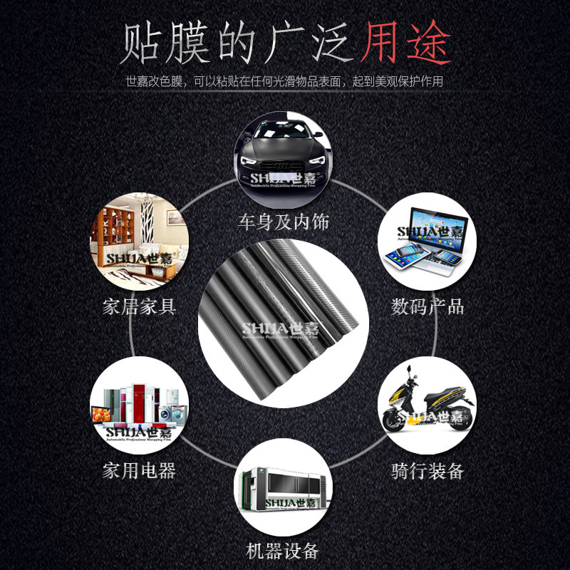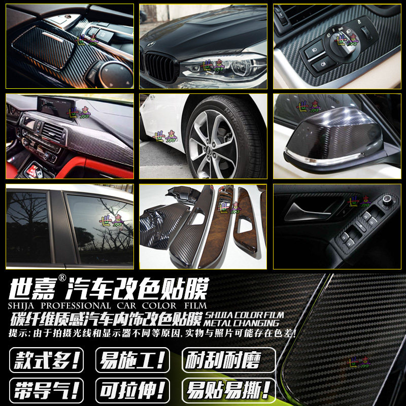 汽车贴膜改色膜碳纤维贴纸PET钢琴黑内饰车身车顶后视镜摩托车膜