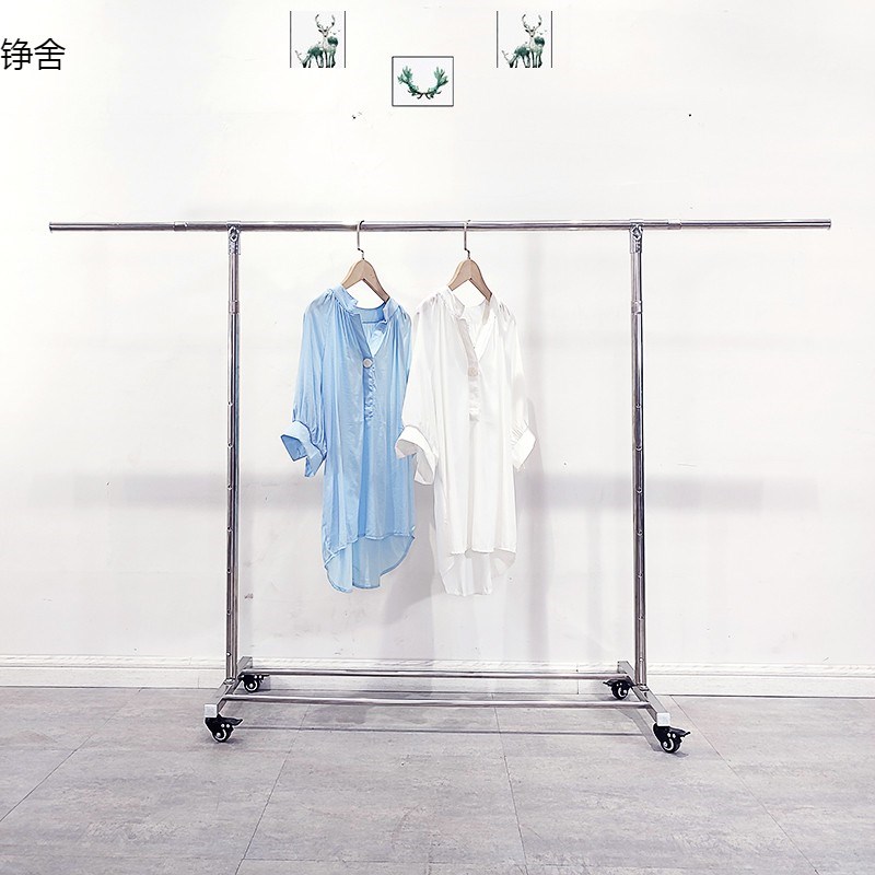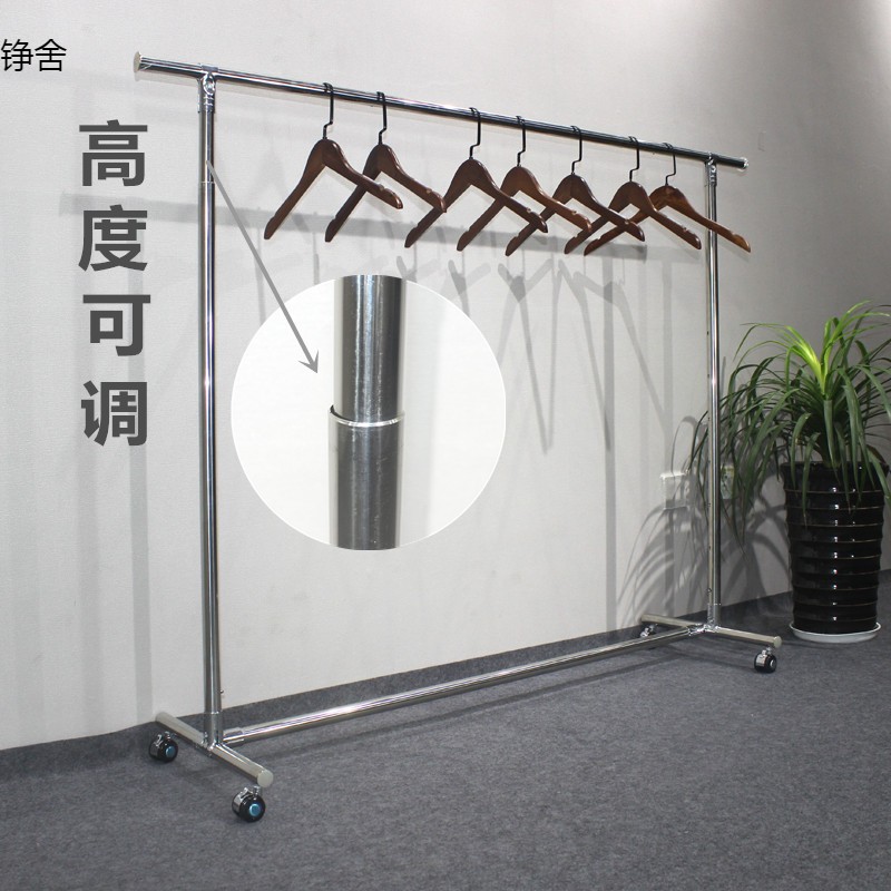 不锈钢单杆落地式特卖服装架高度可调节衣架可伸缩中岛龙门展示架