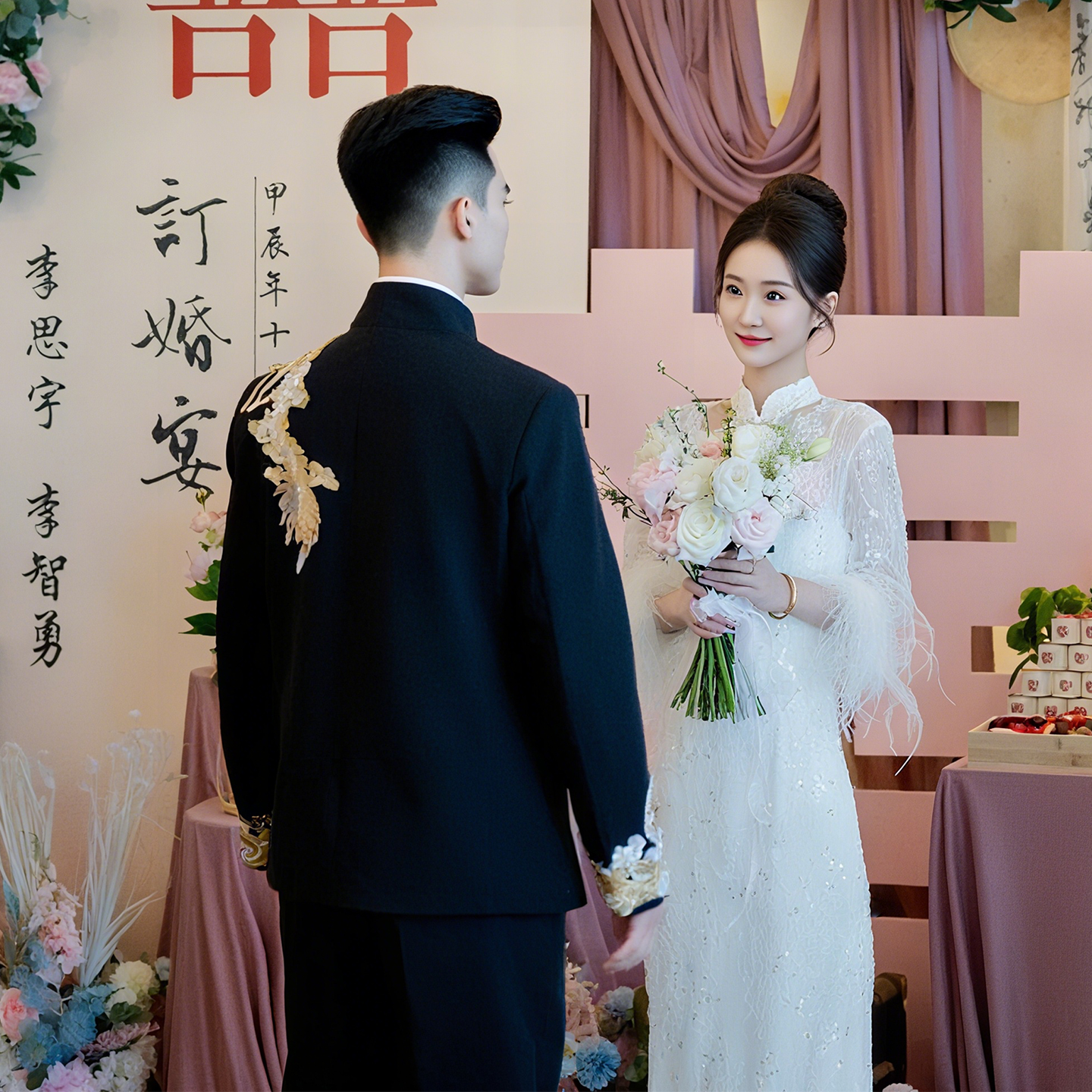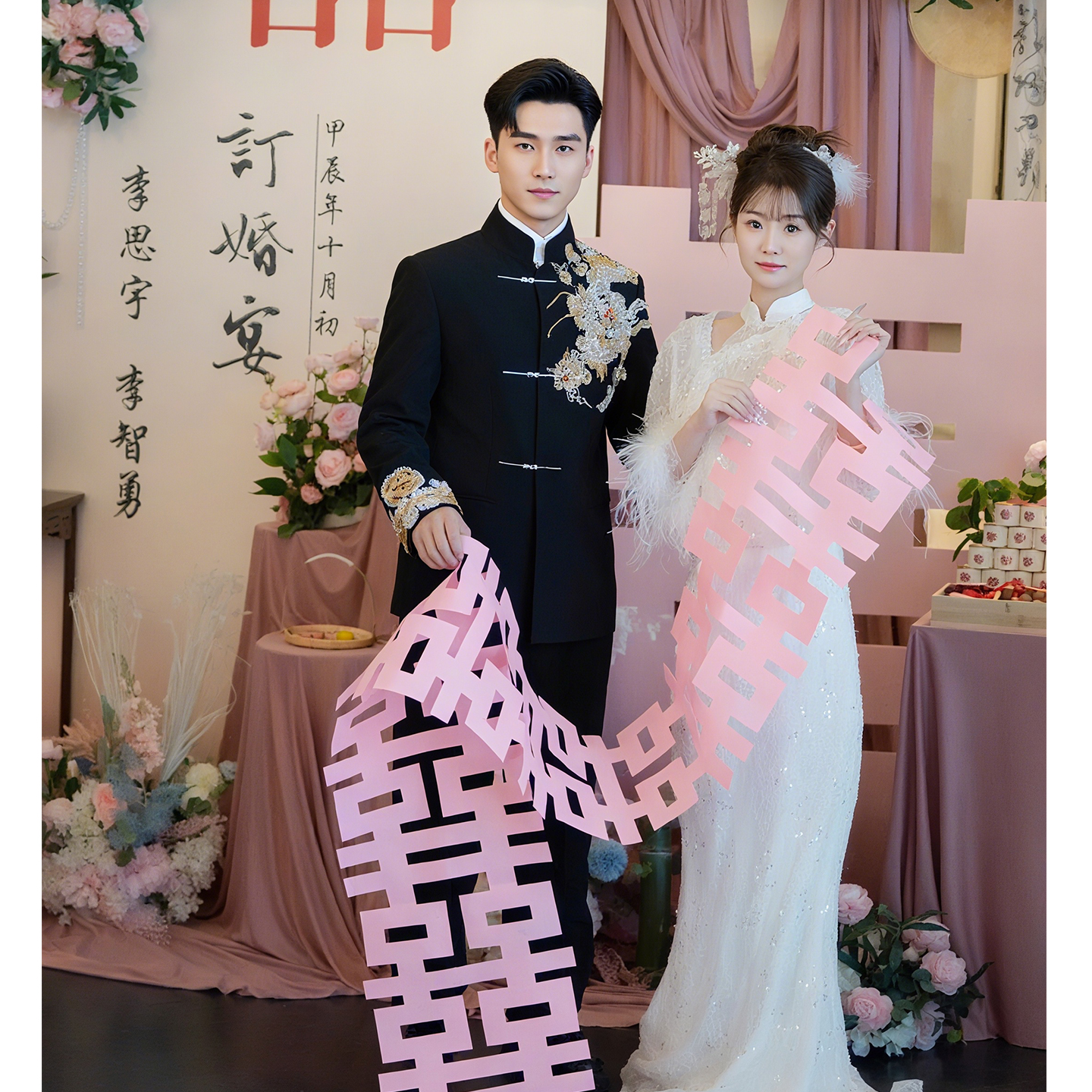 欢喜橙/新中式重工套装男士秀禾服立领原创结婚外套订婚新郎婚服