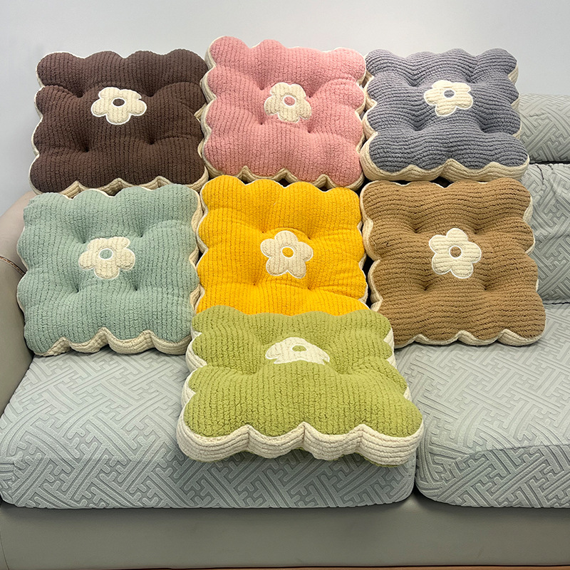 四季通用加厚学生椅子饼干坐垫沙发柔软毛绒座垫曲奇花朵坐云朵垫