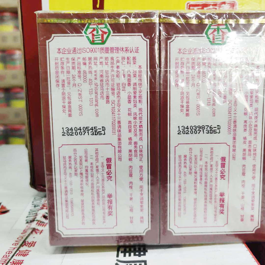 王守义十三香调料45g*100盒/箱炒菜龙虾包子调料香料清真炒粉红烧
